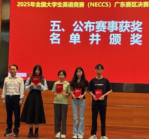 黄梅时节家家雨,青草池塘处处蛙。5月11日,2025年全国大学生英语竞赛(NECCS)广东赛区决赛在广东财经大学隆重举行。本次竞赛由教育部高等学校大学外语教学指导委员会和全国大学生英语竞赛组委会联合主办,吸引了来自全省55所高校的180名优秀学子同台竞技。广东工程职业技术学院派出由8名选手组成的代表队参赛,在领队教师李元洁、刘淼、白雪及文化旅游学院公共英语、旅游英语、商务英语教研室团队的指导下,最终斩获最佳组织奖一项,一等奖8项的优异成绩,取得了我校在该赛事首轮赛制调整下的开门红。