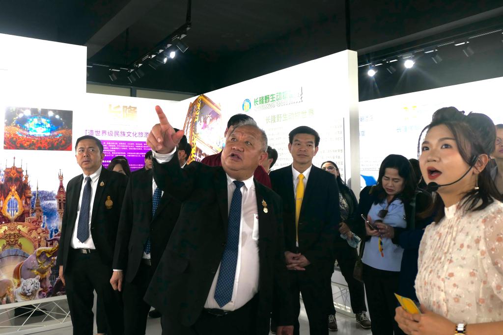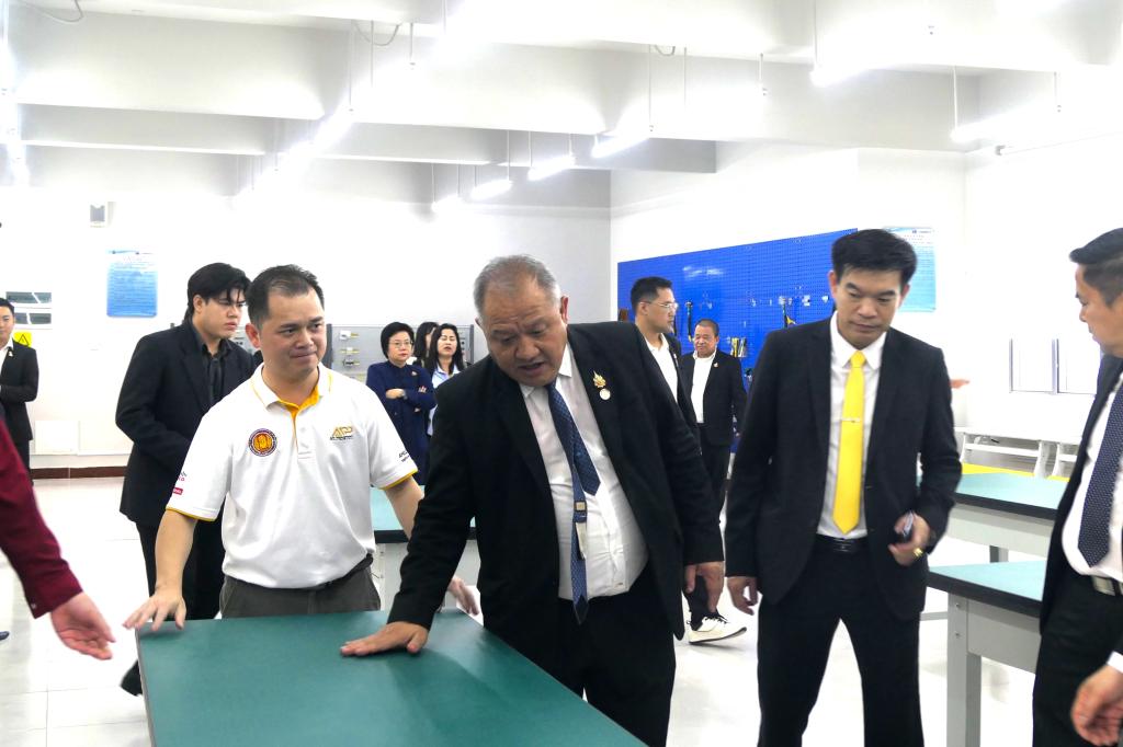在李丽校长的陪同下,泰国教育部职业教育委员会秘书长尤萨蓬·韦努科塞、副秘书长素拉鹏·厄姆乌泰等访问团一行25人参观了长隆产业学院实训基地。访问团对长隆学院先进的实训设备、真实的实践场景、创新的校企合作模式及育人成果表现出浓厚兴趣,并与现场师生进行互动交流。在参观过程中,长隆产业学院工作人员向尤萨蓬·韦努科塞秘书长等详细介绍了长隆产业学院“六共三进·全链协同”的校企合作育人模式与育人成效。