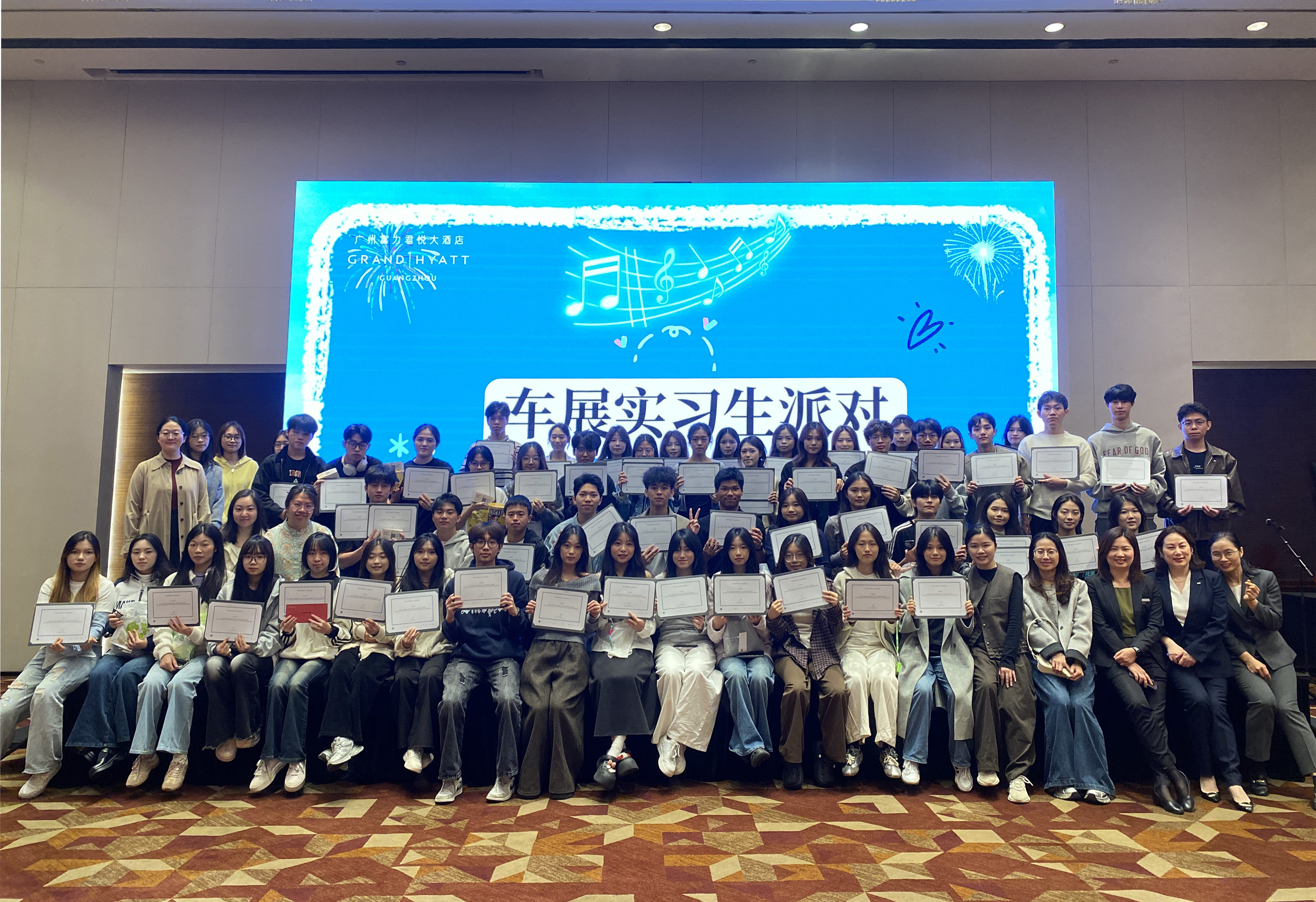 2025年12月1日,随着2025年广州国际汽车展览会圆满闭幕,广州富力君悦大酒店与文化旅游学院联合开展的“酒店到荟”实践项目画上圆满句号。为表彰学生实践成果,富力君悦大酒店特别举办实习生欢送派对,其中4名学生荣获“优秀实习生”称号,企业方对我校学子的专业素养与职业精神给予高度评价,并现场表示将优先为表现优异的学生提供实习与就业机会。