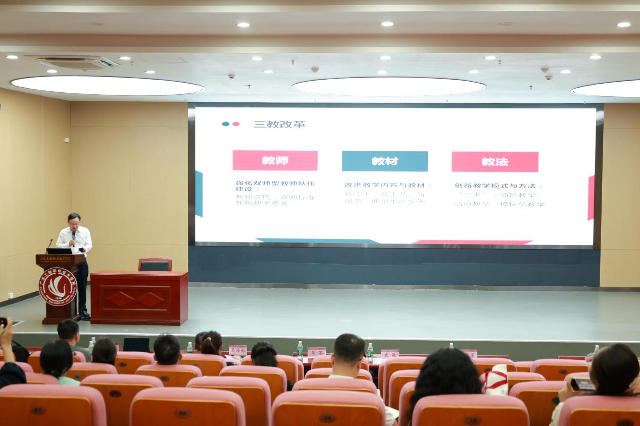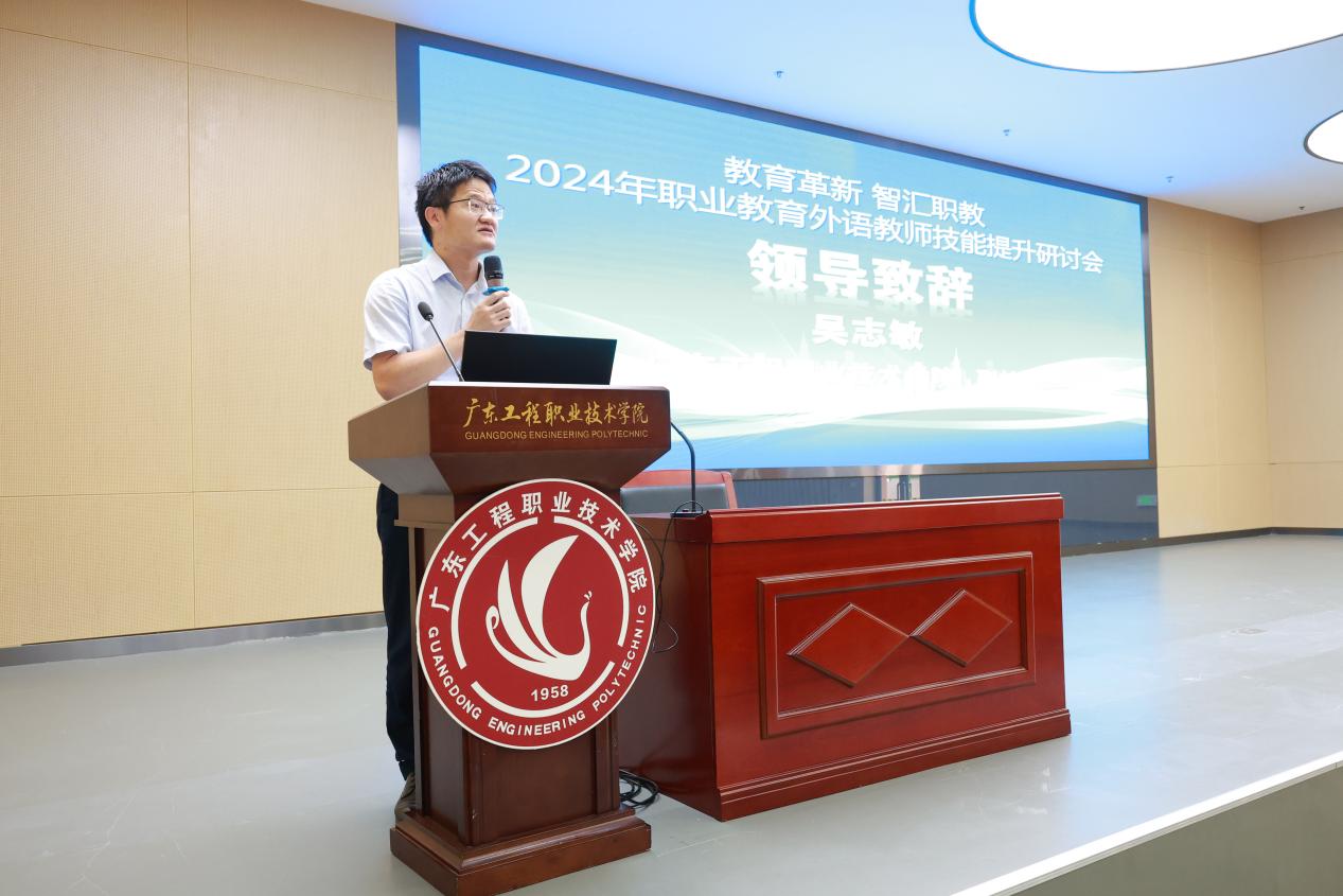 2024年11月1日—3日,由上海外语教育出版社、中国外语教材与教法研究中心和中国高校外语教师发展研究院联合举办的2024年职业教育外语教师技能提升研讨会在广东工程职业技术学院省职教城校区举行。本次研讨会主题为教育革新 数字赋能,同时作为南粤外语名师大讲堂第44期的活动,旨在为职业教育外语教师提供一个交流经验、分享成果、探讨问题的平台,共同推动职业教育外语教学事业的发展。广东省职业本科、高职院校负责外语教学相关院系领导、学科负责人、一线骨干教师等50余人参加了研讨会。