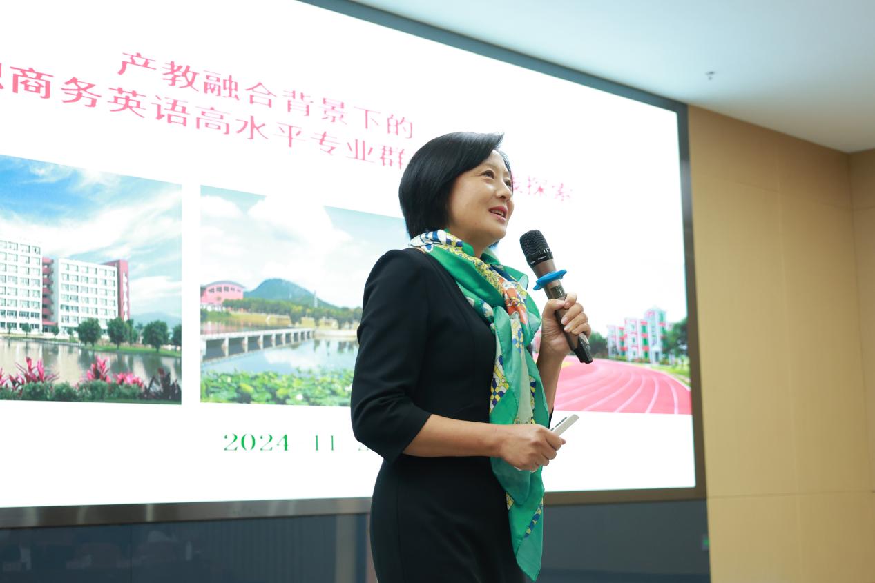 广州工程技术职业学院吴寒教授带来了《产教融合背景下的高职商务英语高水平专业群建设实践探索》的主旨报告。他从职业教育高质量发展的必由之路、商务英语高水平专业群建设职和校行企关务人才培养实践三个方面展开报告,重点阐述如何有效进行产教融合、校企合作实践,创新对接产业链、人才链,设计模块化、递进式专业群课程体系。