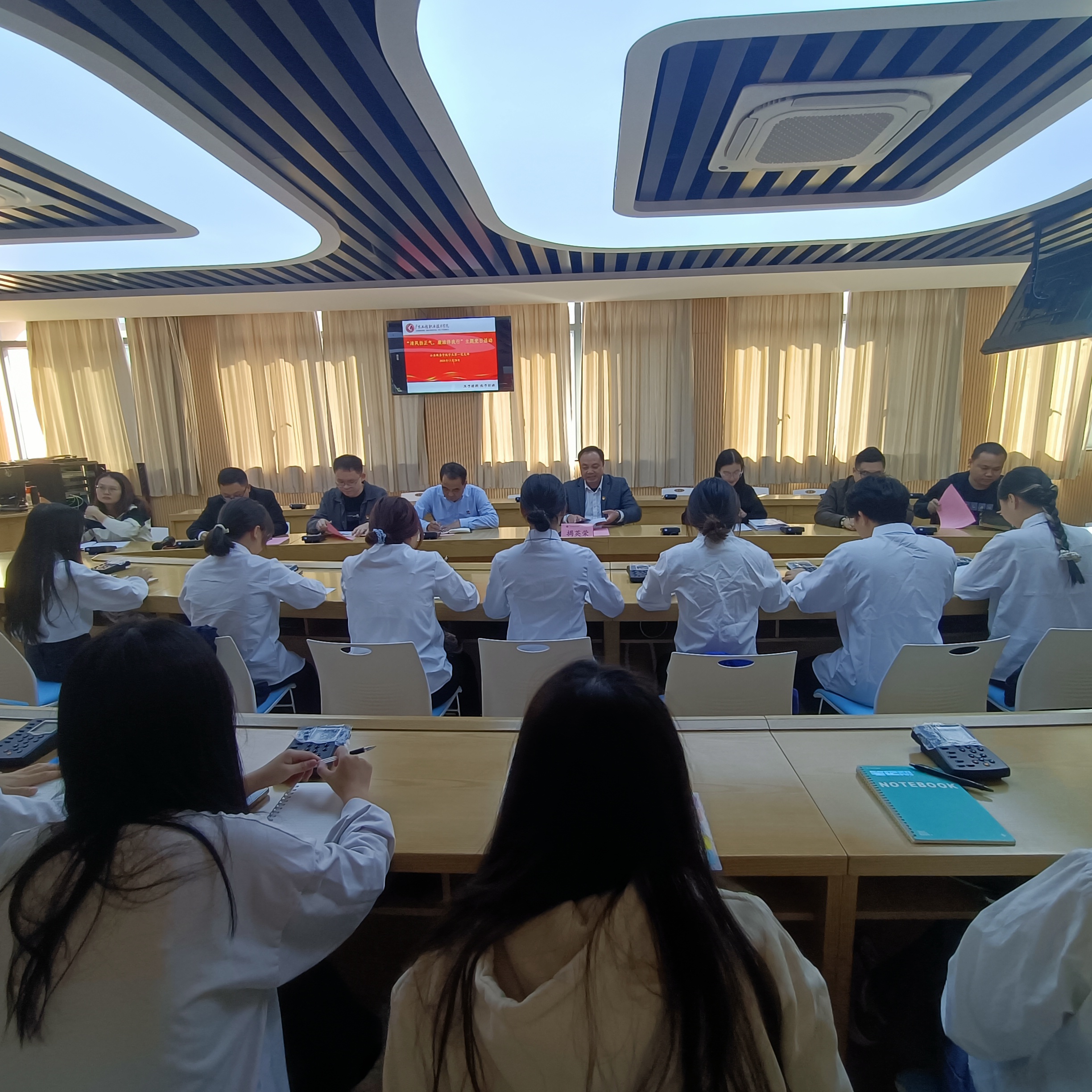 为深入贯彻落实全面从严治党要求,教育引导党员增强廉洁意识,做好新时代的合格党员。2024年11月28日,公共服务学院学生第一党支部开展了“清风扬正气,廉洁伴我行”主题党日活动。学校党委委员、副校长揭英荣,公共服务学院党委书记吴文丰参加本次组织生活。会议由支部党员华永城主持。