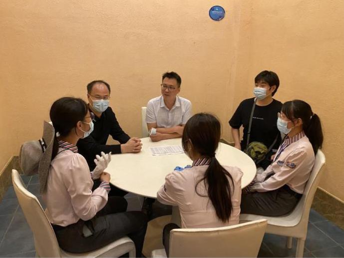 10月12日,院长吴海彬、副院长黎惠忠带队到珠海长隆,10月14日,书记吴文丰带队到广州长隆。在珠海长隆及广州长隆的师生座谈会上,与会老师与学生面对面交流,对实践学生的防疫措施、实践岗位、实践内容、实践收获、实践津贴及实践过程中的困难和问题等各方面情况深入了解。座谈会后,公共服务学院学院领导到岗位中看望了实践中的学生,并鼓励同学们认真实践,顺利完成学业。
