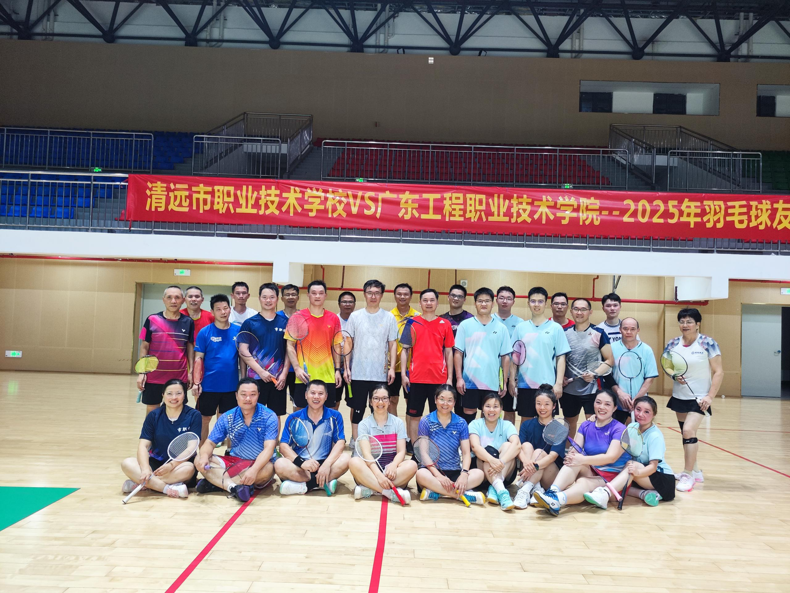 6月10日下午,我校体育馆内羽球翻飞、喝彩声不断,一场洋溢着青春活力的羽毛球交流赛在此精彩举行。清远市职业技术学校与我校以羽球为纽带,共同谱写校际交流新篇章。学校党委委员、副校长吴志敏和张小广和学校教职工羽毛球队及先进制造学院(电梯工程学院)部分教职工共同参与活动。