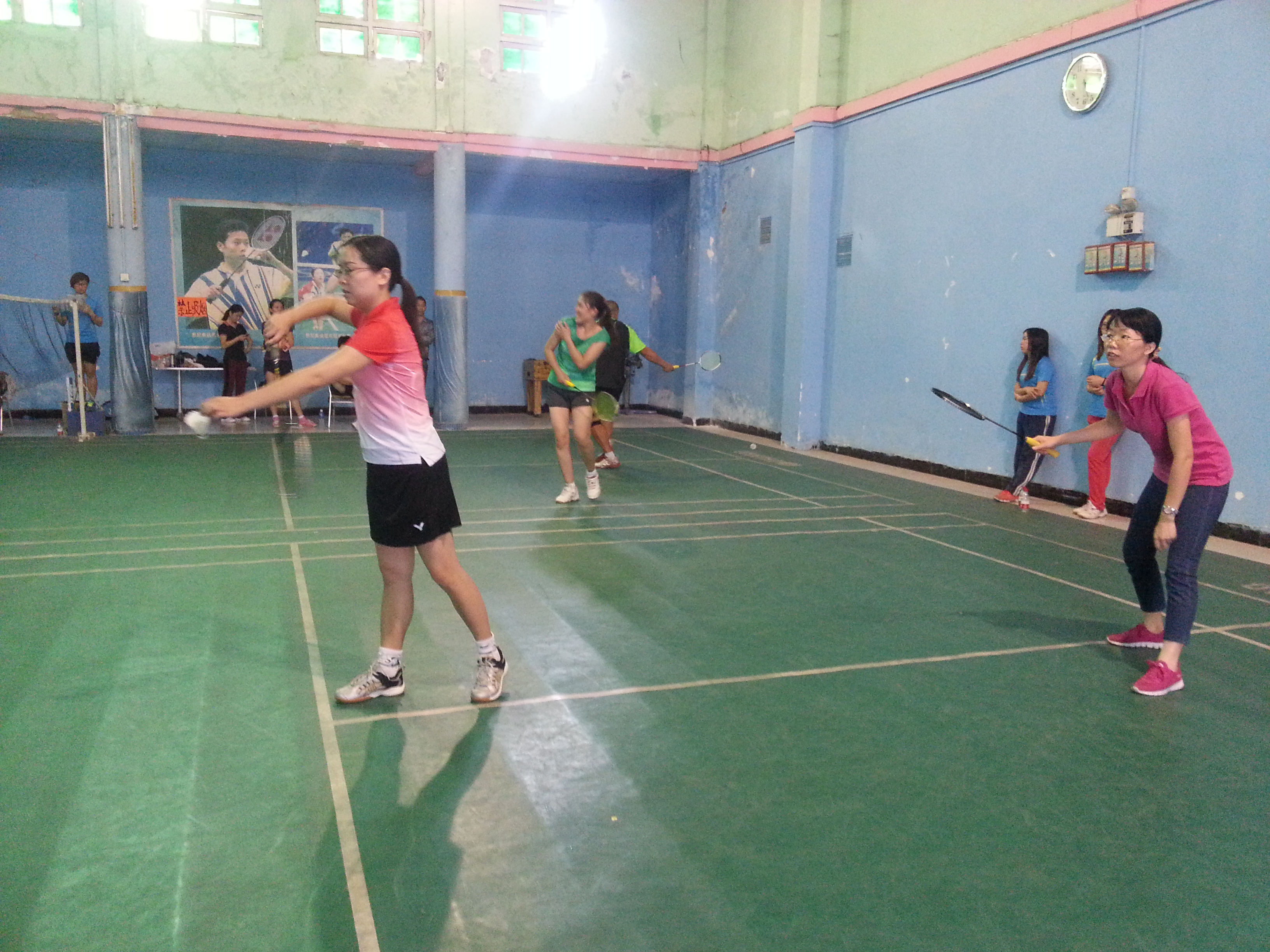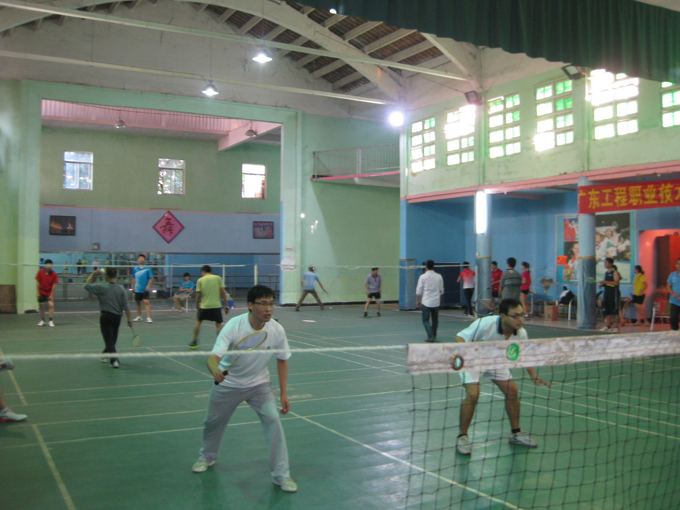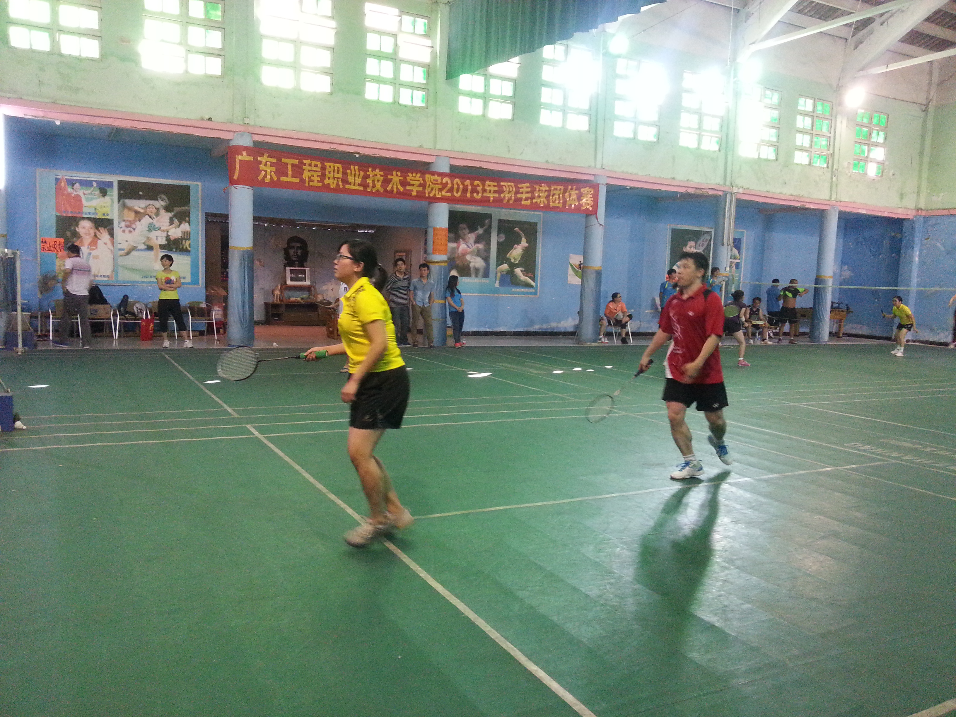 11月7日下午,由学院工会主办、体育部承办的2013年广东工程职业技术学院教职工羽毛球团体赛在凤凰羽毛球馆举行。本次比赛有9个参赛队,共18个工会小组参赛。比赛以男双、女双和混双的成绩记团体总分,采取每局21分、每盘三局两胜制。比赛首先进行小组循环赛,各小组前两名进入淘汰赛,再由获胜的3个队进行循环赛确定前三名,负的三个队进行循环赛确定4到6名的名次。