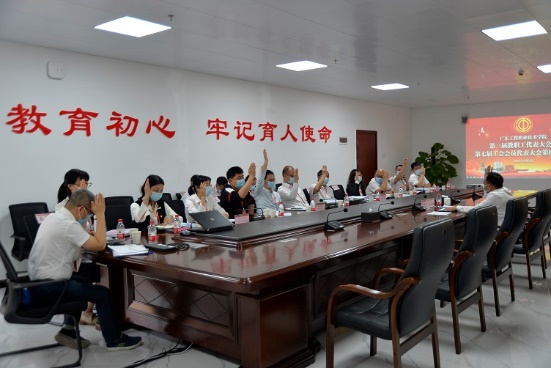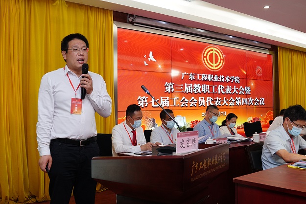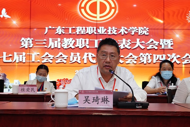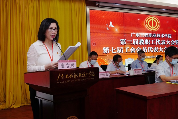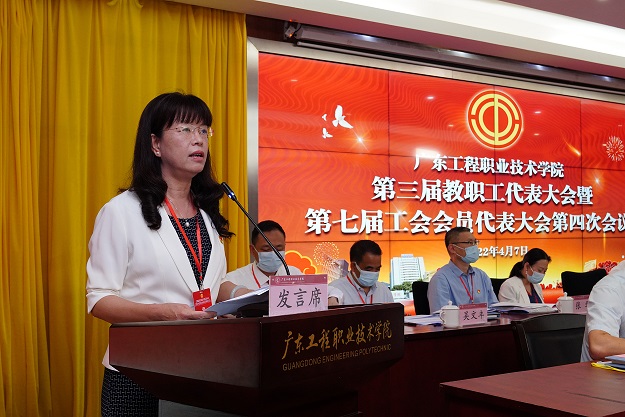 会上,财务处处长唐卫国同志就学校2022年财务预算情况作了说明并通报了2021年财务决算报告;党政办公室、清远校区建设管理办主任张永强同志分别就学校“十四五”事业发展规划的制定思路和目标及广州校区学生宿舍项目建设情况作了详细的说明;工会专职副主席钟向忠同志就《广东工程职业技术学院教职工代表大会章程》的修订情况作了说明。