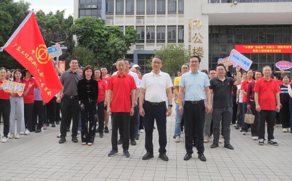 4月28日下午,为庆祝中华全国总工会成立100周年暨庆祝 2025 年五一国际劳动节,大力弘扬劳模精神、劳动精神、工匠精神,学校工会在两校区组织开展“中国梦 劳动美”——百年工运薪火相传 工程先锋筑梦同行为主题的教职工校园健步走活动。学校党委书记叶忠明,党委副书记、校长李丽等学校领导及近三百名教职工参加活动。
