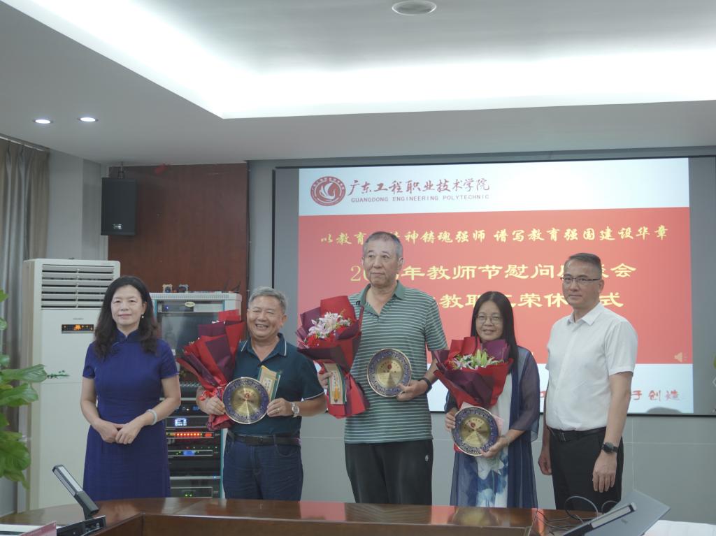 在第41个教师节即将到来之际,9月8日上午,学校工会在广州校区办公楼615会议室举办“以教育家精神铸魂强师,谱写教育强国建设华章”为主题的教师节慰问座谈会暨退休教职工荣休仪式。学校党委书记叶忠明、工会委员、荣休教职工代表、受慰问教师及相关部门负责人欢聚一堂,致敬奉献、畅谈未来。活动由校工会主席方燕主持。