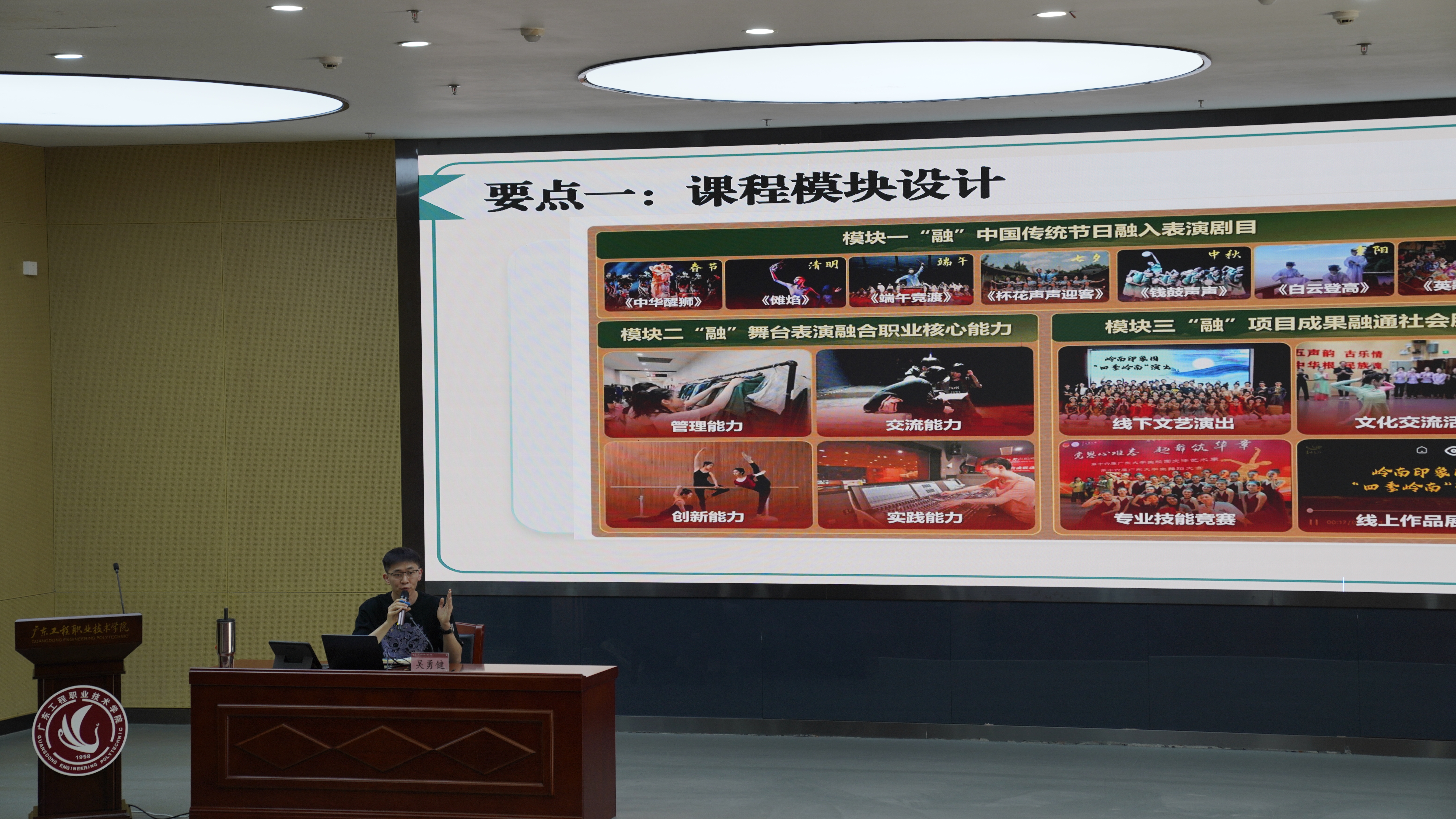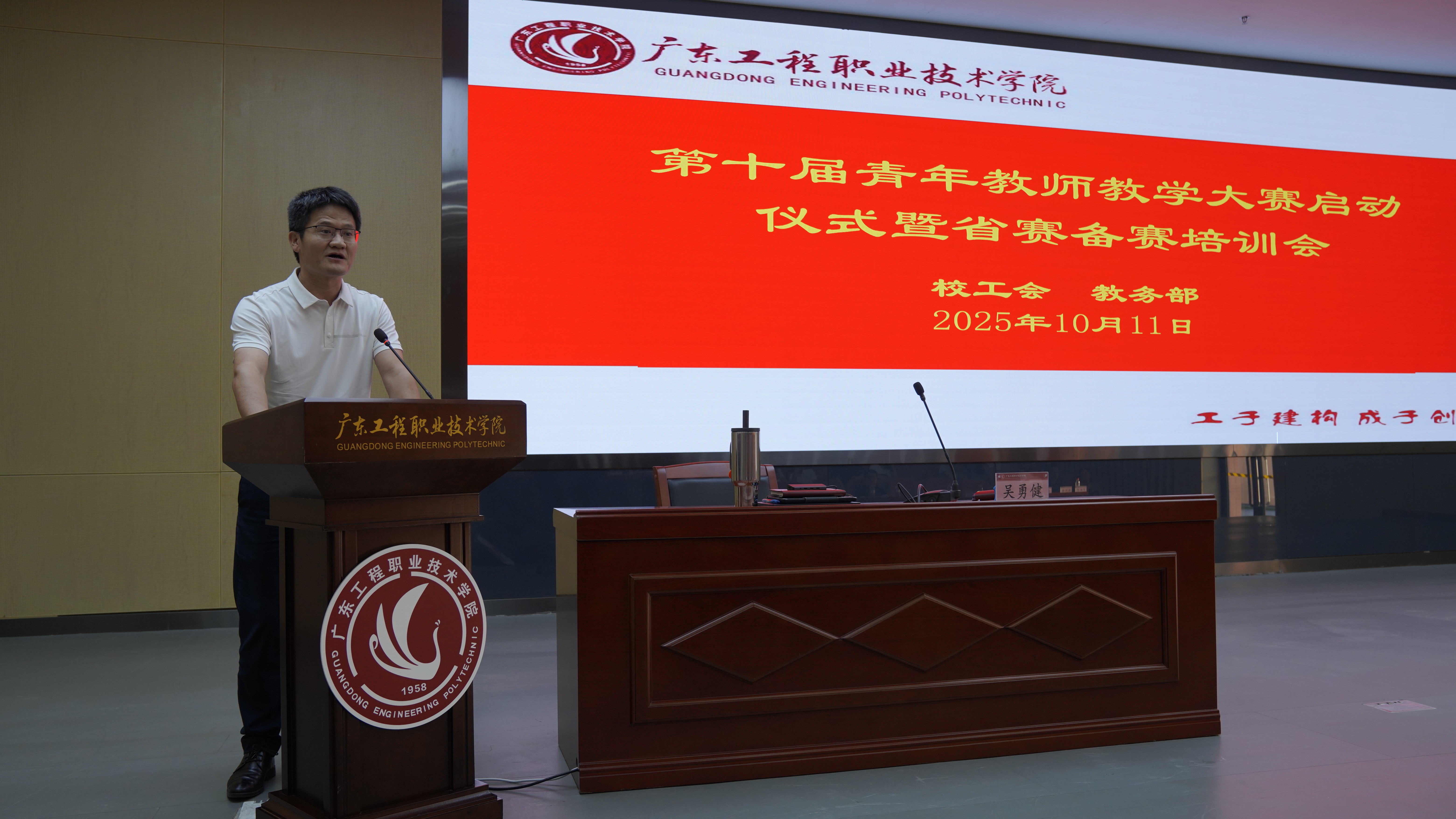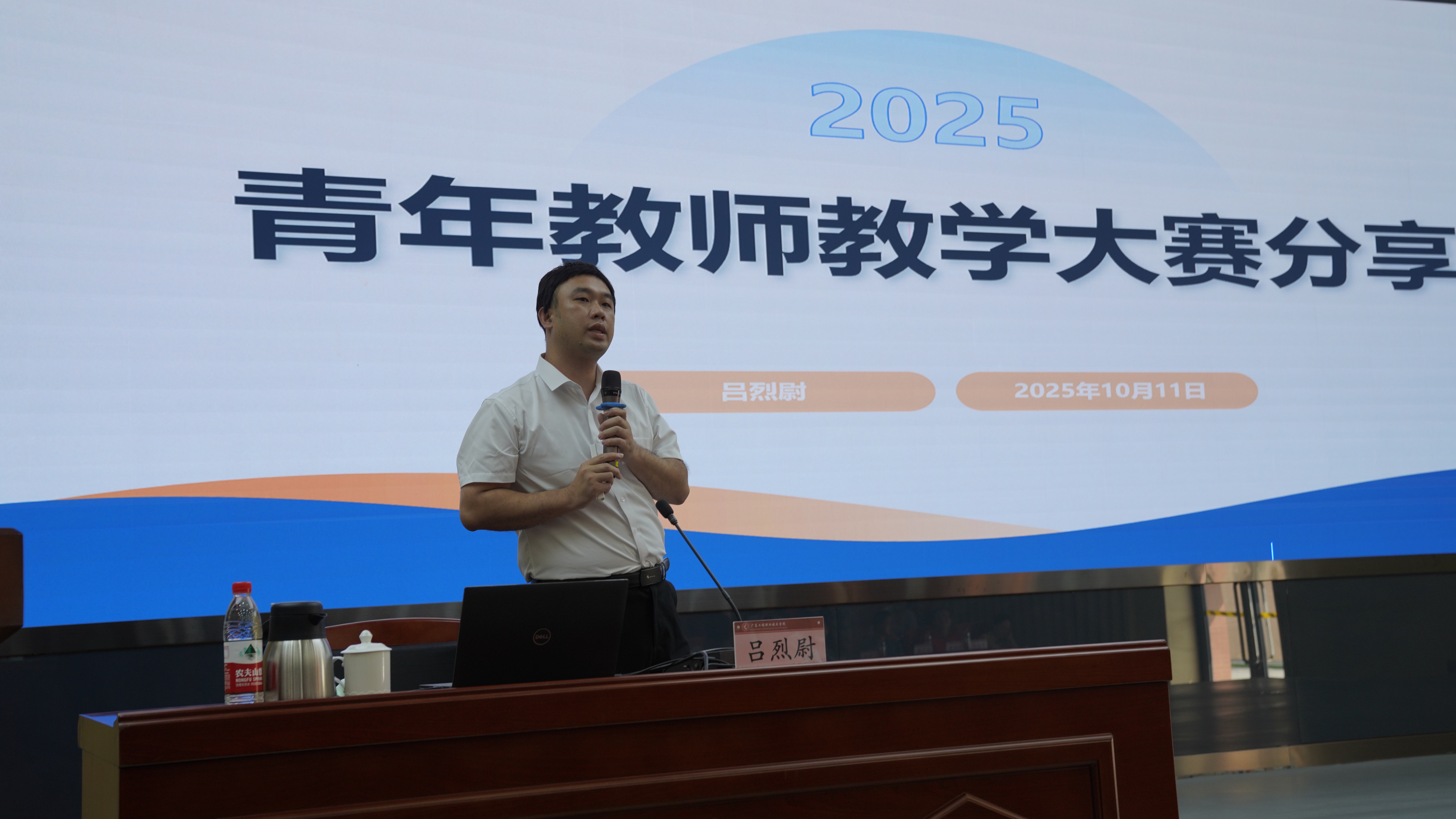 “青教赛”培训讲座聚焦“实战备赛”,邀请了两位获得广东省第七届青年教师教学大赛一等奖的广东省外语艺术职业学院的吴勇健老师和我校吕烈尉老师,他们围绕青教赛赛事规则、评审维度展开深度解读,内容涵盖了教学大赛的方法内容,包括教学设计、课堂展示、教学反思等核心环节的得分要点,结合自身的参赛经验,剖析了“创新性”“逻辑性”“互动性”在评审中的关键作用,帮助教师精准把握赛事“风向标”。