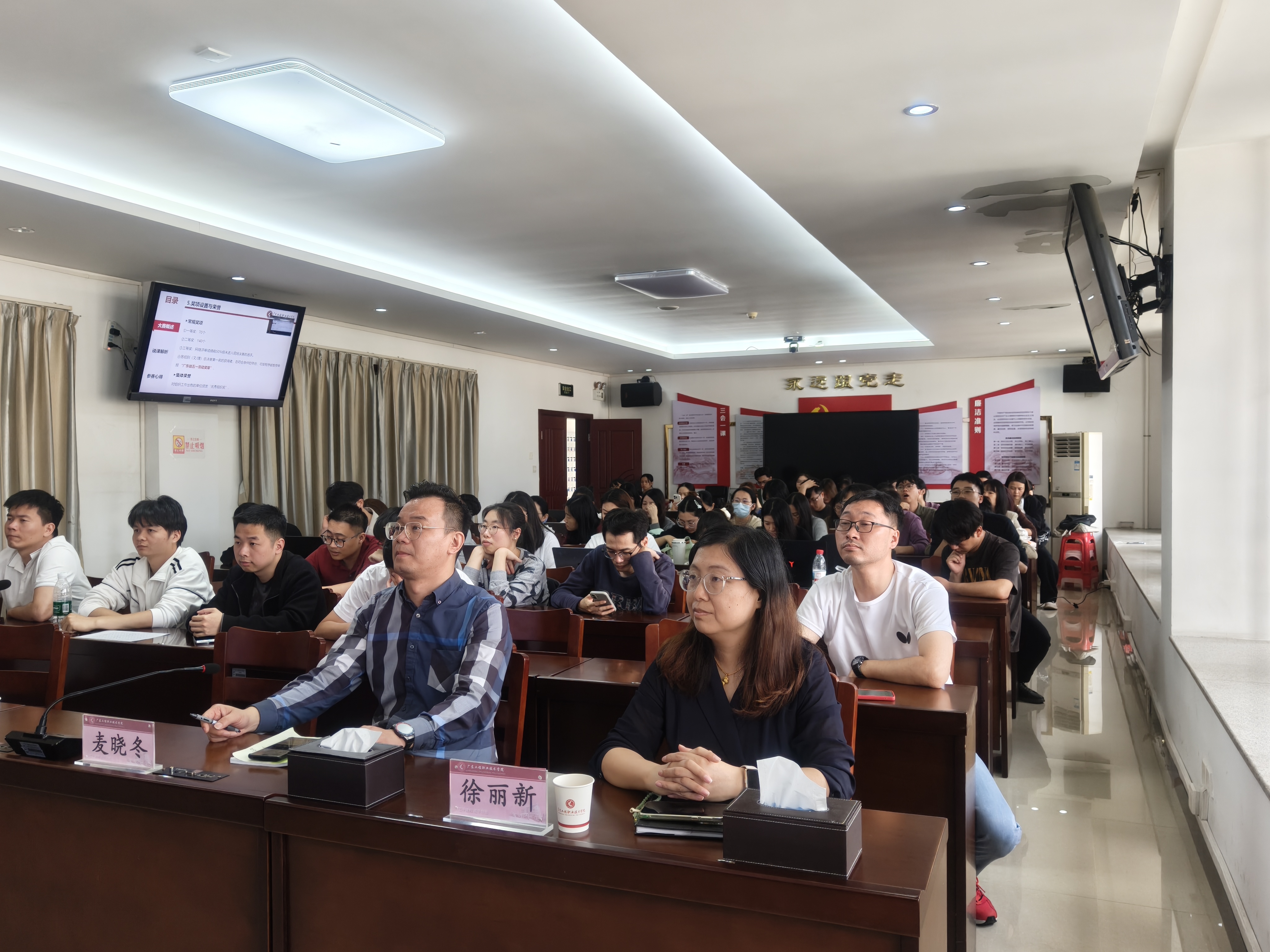 12月24日下午,学校工会联合教务部在两校区同步举办第十届青年教师教学大赛暨省赛备赛专题培训,邀请了两位广东省第七届高校(高职)青年教师教学大赛一等奖的青年教师现场培训。校工会、教务部、各学院分管教学院长、副院长及40周岁以下青年教师近250人参加培训,学校工会专职副主席黄馥丽主持。