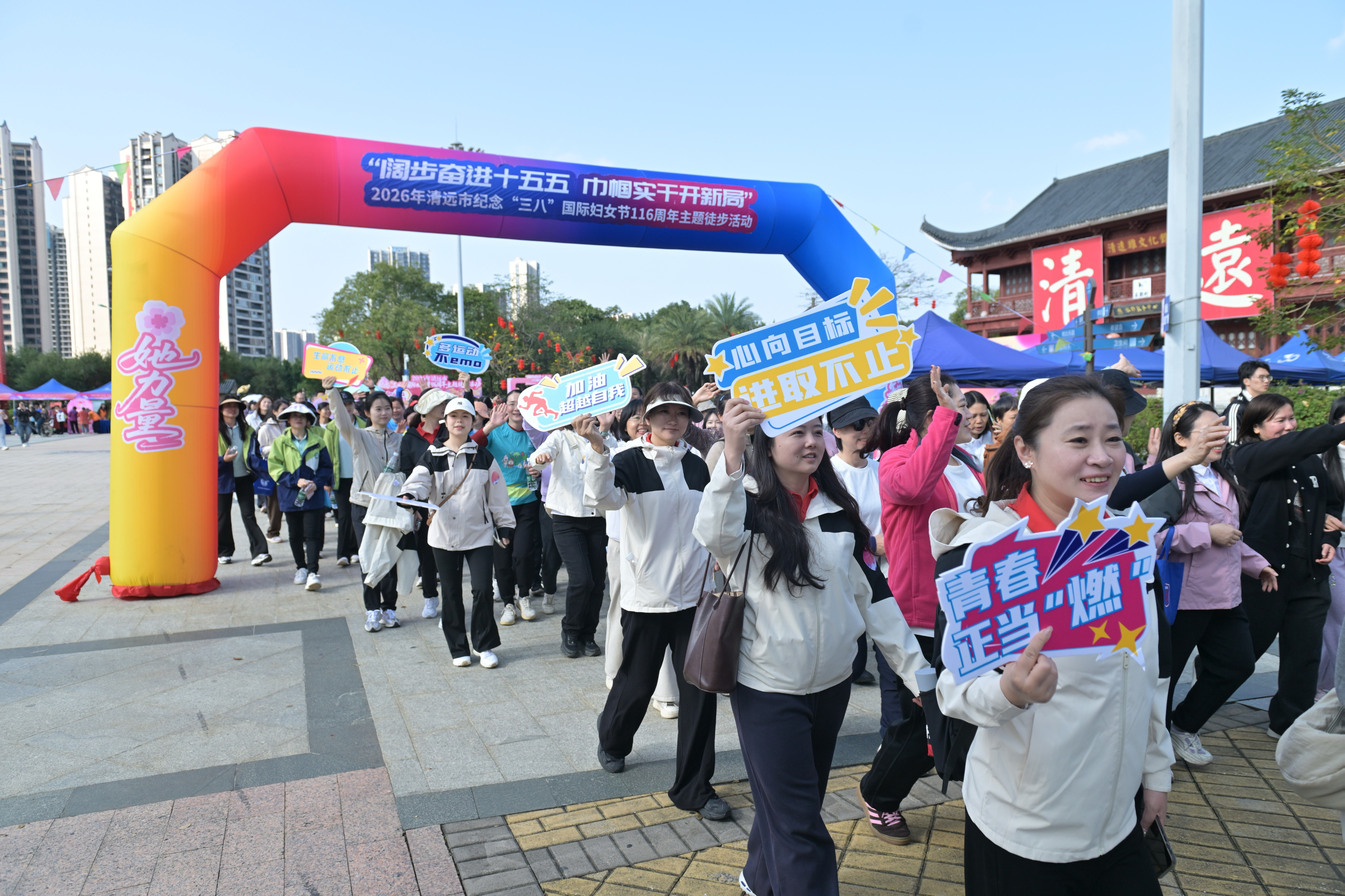 春和景明,芳华绽放。在纪念“三八”国际妇女节116周年到来之际,学校工会组织女同胞于3月6日参加清远市妇联在清城区飞来湖公园举办的“阔步奋进十五五 巾帼实干开新局”主题徒步活动。团结引领广大妇女干部踔厉奋发、实干担当,在“十五五”建设中展现巾帼风采、贡献巾帼力量。