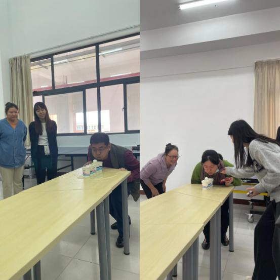 在吹乒乓球趣味赛中,教职工们在欢声笑语中挥动着“秘技”,争夺成功吹球的机会;踩气球趣味赛中,欢笑声不断,每个人都竭尽全力保护自己的气球,同时尝试破坏其他人的气球;抢凳子趣味赛更是让大家展现了速度的反应和灵活的身手。而乒乓球双打赛和桌球单打赛更是激发了教职工们的竞技精神,现场气氛热烈,掌声不断。