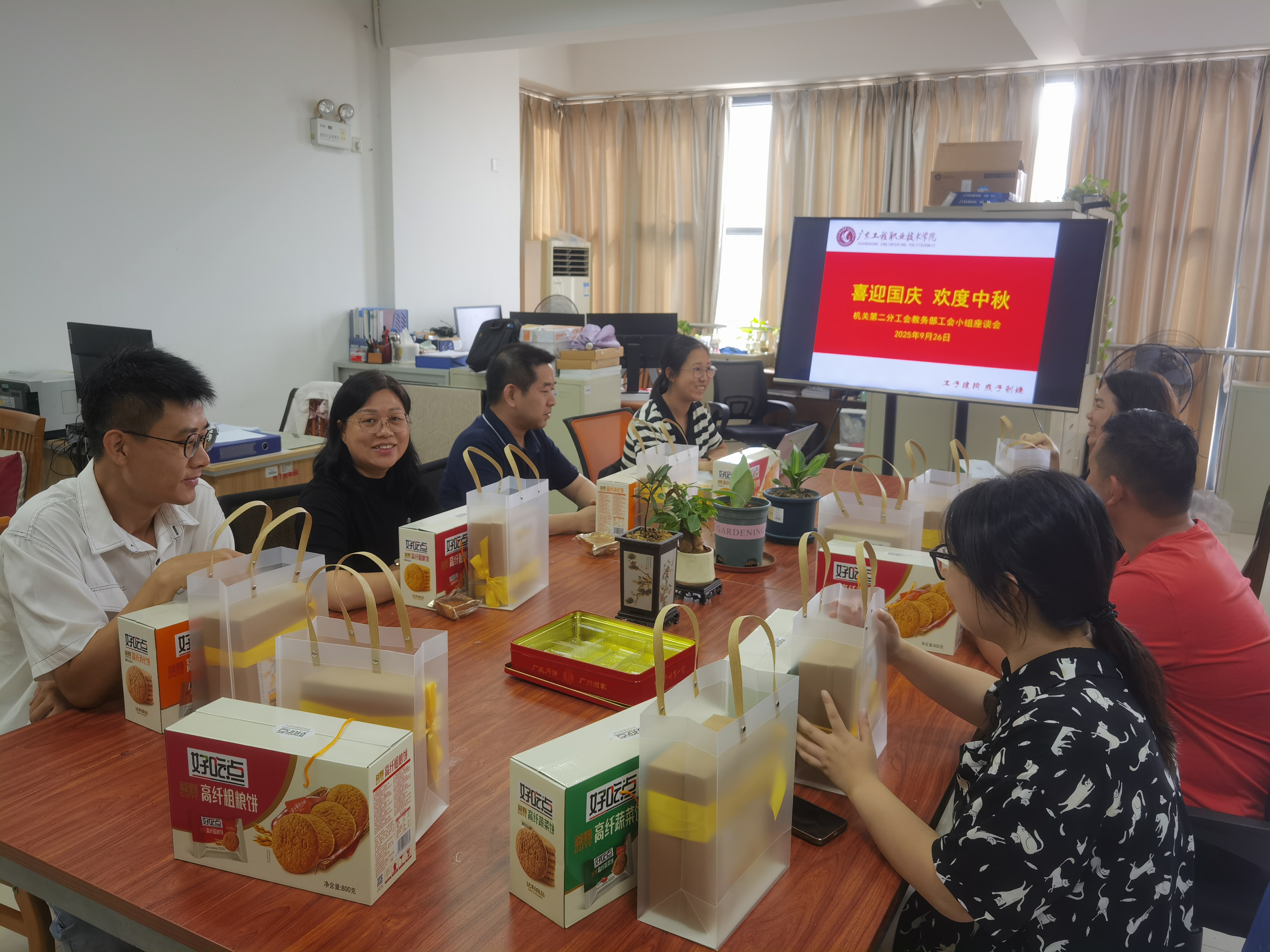 为弘扬中华优秀传统文化,营造喜庆祥和的双节氛围,增强团队凝聚力与向心力。9月下旬,第二机关分工会各工会小组分别举办“欢度中秋 喜迎国庆”为主题系列茶话会,工会小组全体教职工欢聚一堂,共庆佳节、共话未来。