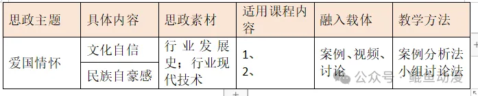 一是要梳理课程专业知识点中蕴含的思政主题,比如爱国情怀、职业认同、职业道德与素养、生态文明、社会责任等,这些主题可以进一步细化为文化自信、爱岗敬业、善于沟通、绿色环保、团结协作等具体思政元素。