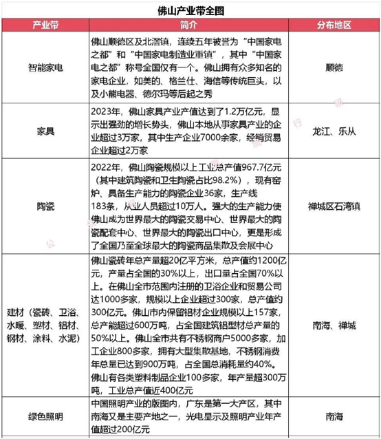 佛山作为中国唯一的制造业转型升级综合改革试点城市,工业规模居全国前列,城市工业占比接近六成,这在万亿级城市中是罕有的。佛山制造业涵盖了家电、家具、陶瓷、卫浴、建材、五金、家纺等多个领域,产业带优势极为明显。