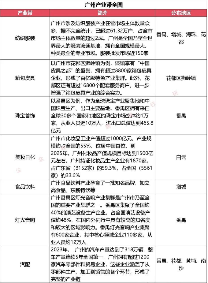 广东省下辖21个地级市,产业带分布以粤港澳大湾区中的9个核心城市为主,包括广佛肇、深莞惠、珠中江等。