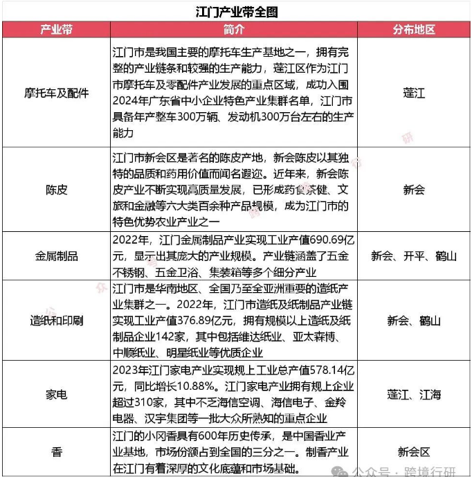 江门是广东全部20个战略性产业集群的布局城市之一,更是承担发展其中8个战略性产业集群任务的核心城市,江门拥有诸多传统特色优势产业带。