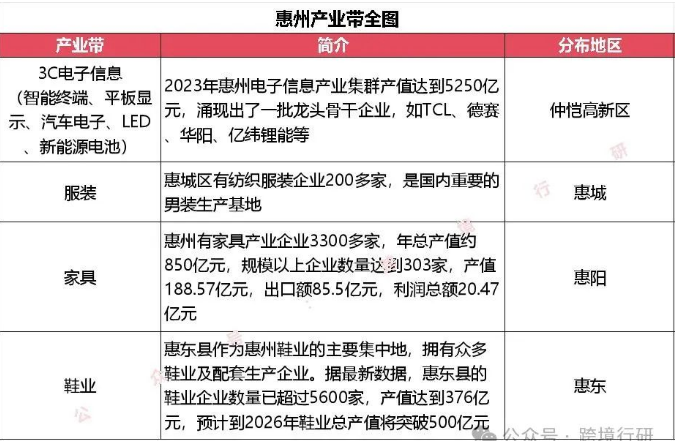 此外,惠州还有鞋业、服装、家具等优势传统产业带。