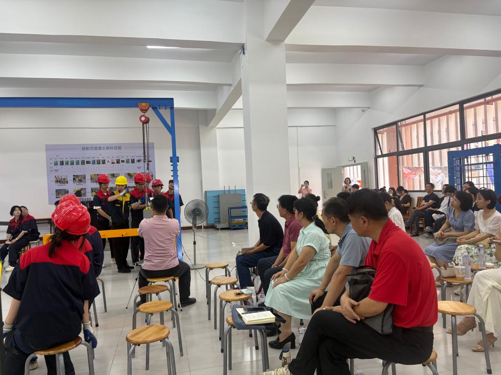 为进一步发挥优秀教师的示范引领作用,加强对新入职教师的示范引导,不断提高学校教师的教育教学水平,提升人才培养质量,6月11日下午,学校首次校级实训公开课活动在省职教城校区建筑工程学院校企共建实训室举行。教学质量监测与评估中心负责人陈淳慧主持,省职教城校区专职教学督导,马克思主义学院、建筑工程学院、财经商贸学院、汽车工程学院、创新创业学院教学副院长,先进制造学院(电梯工程学院)、体育健康学院等省职教城校区二级教学单位的新进教师代表,2023智能建造技术班部分学生等约70人参加。