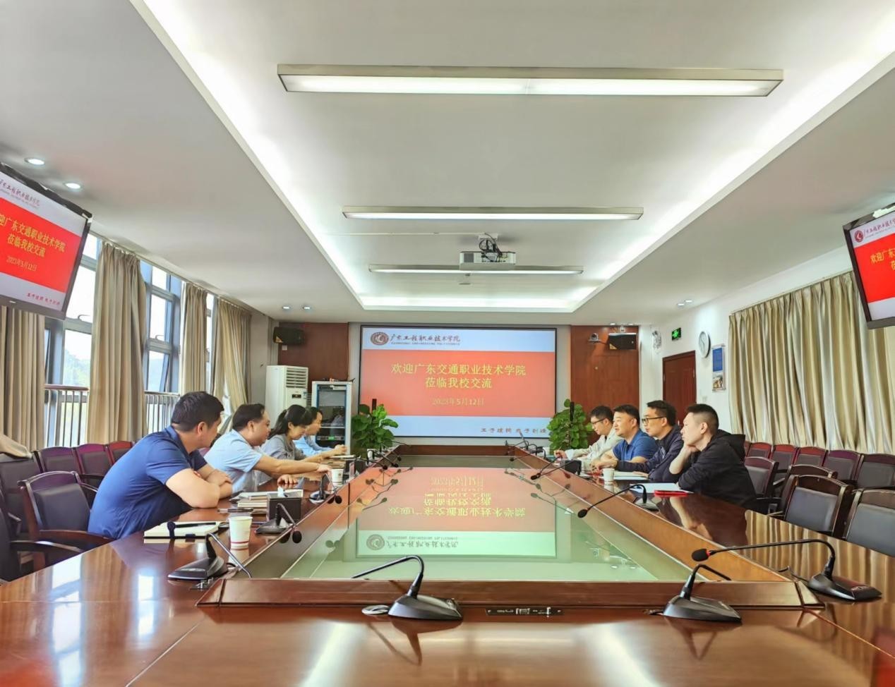 5月12日上午,广东交通职业技术学院总务后勤部副部长胡竟强一行4人来校就校园规划、基建项目建设等相关内容进行调研交流。学校党委委员、副校长揭荣英在广州校区行政楼615会议室会见了胡竟强一行,会议由总务后勤部(保卫部)部长舒美艳主持。