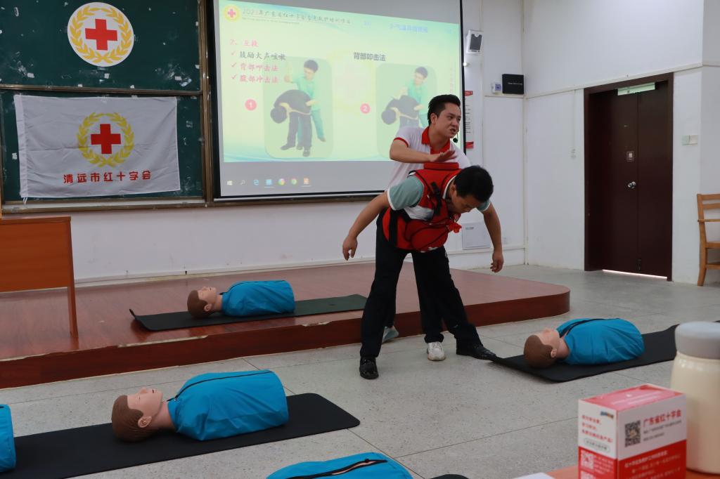 为加强生命健康教育,提高学生自救互救能力,进一步推动高水平安全文明校园建设,5月20日、27日、28日分别在省职教城(清远)校区教学楼Q1-110和Q1-105组织开展了三期红十字应急救护员培训活动,此次急救培训由广东省红十字会主办,清远市红十字会和校红十字会承办。清远市红十字会罗伟添主任、学校总务后勤部(保卫部)陈艳芬医生出席本次活动,共150名师生参加了培训。