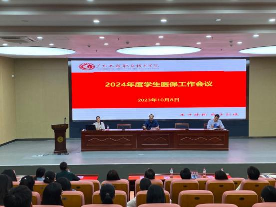 为做好我校学生城乡居民基本医疗保险参保征缴工作,10 月 7、8 日,学校在广州校区和省职教城(清远)校区召 开 2024 年度学生医保工作会议,学校党委委员、副校长揭 英荣出席会议,学生工作部、总务后勤部(保卫部)负责人,两校区各二级学院书记、副书记,全体辅导员及学生医保相关工作人员参加。