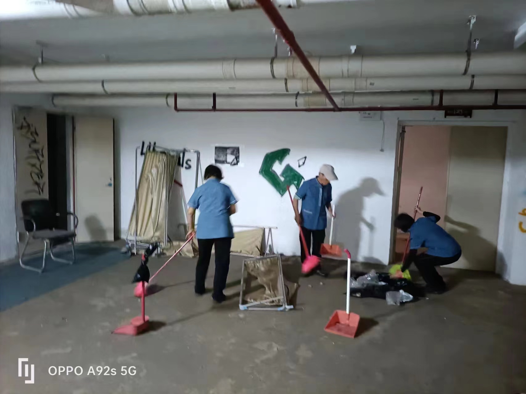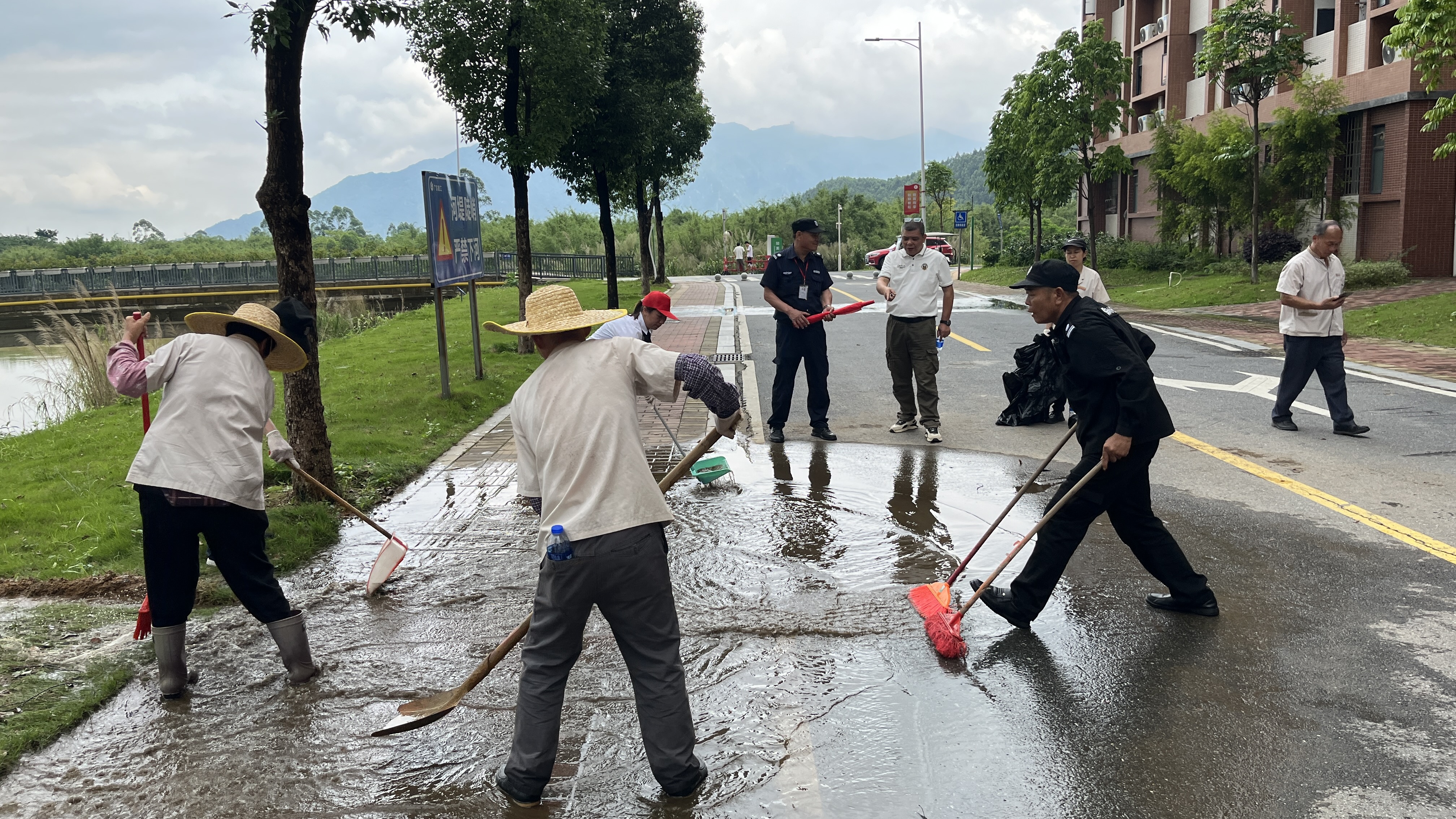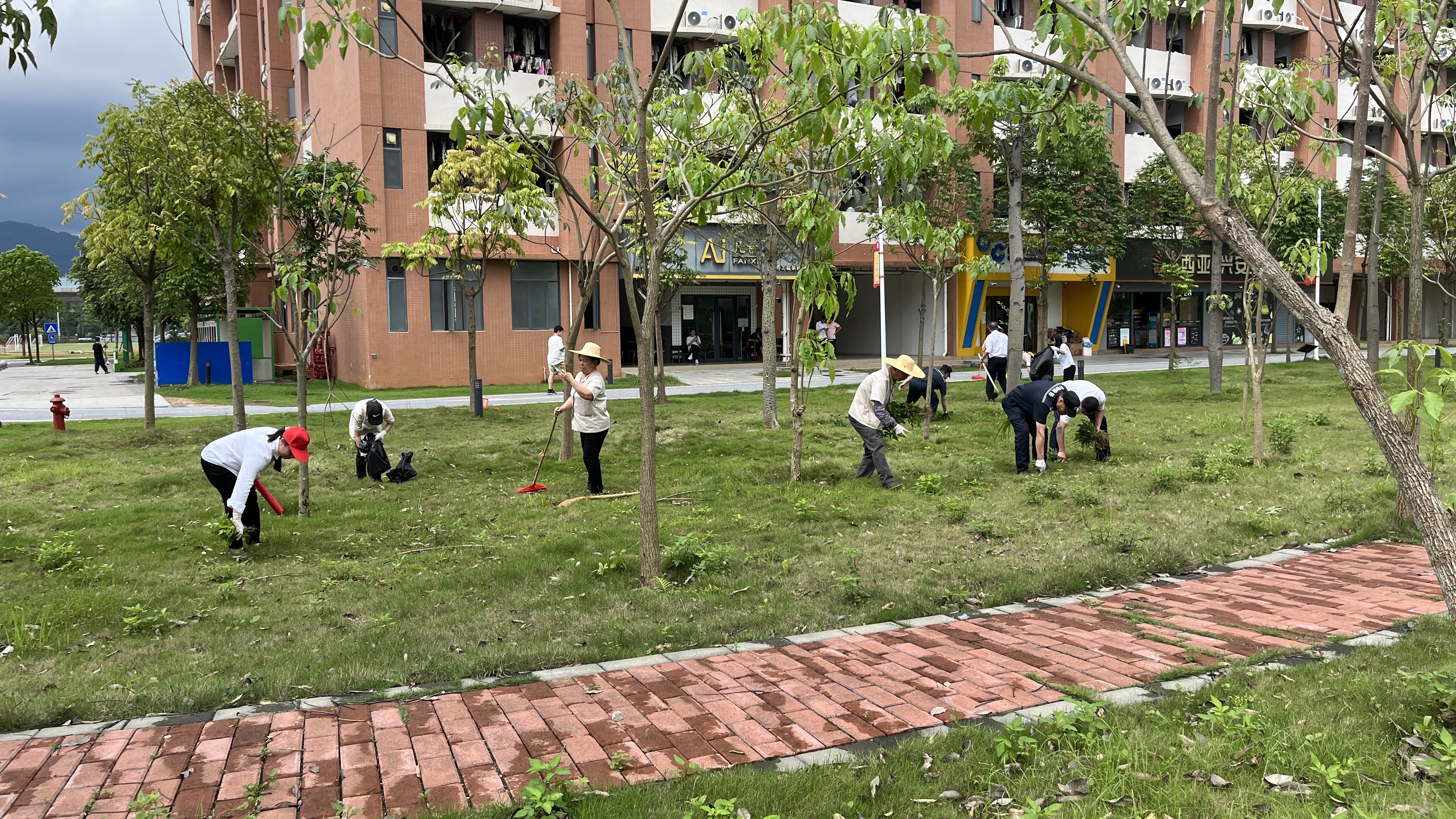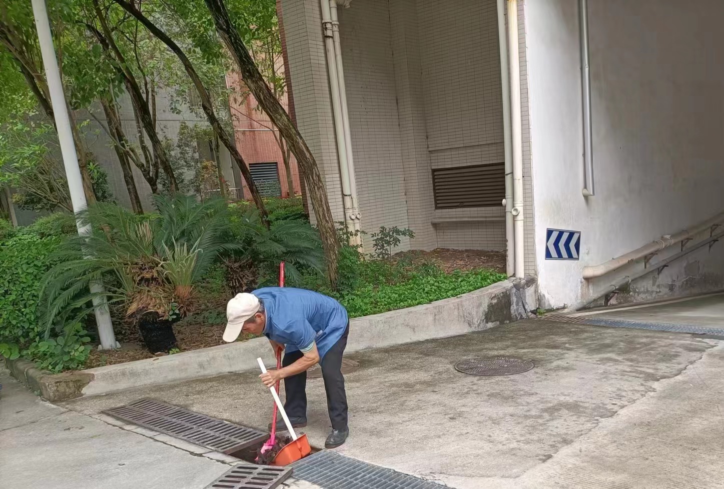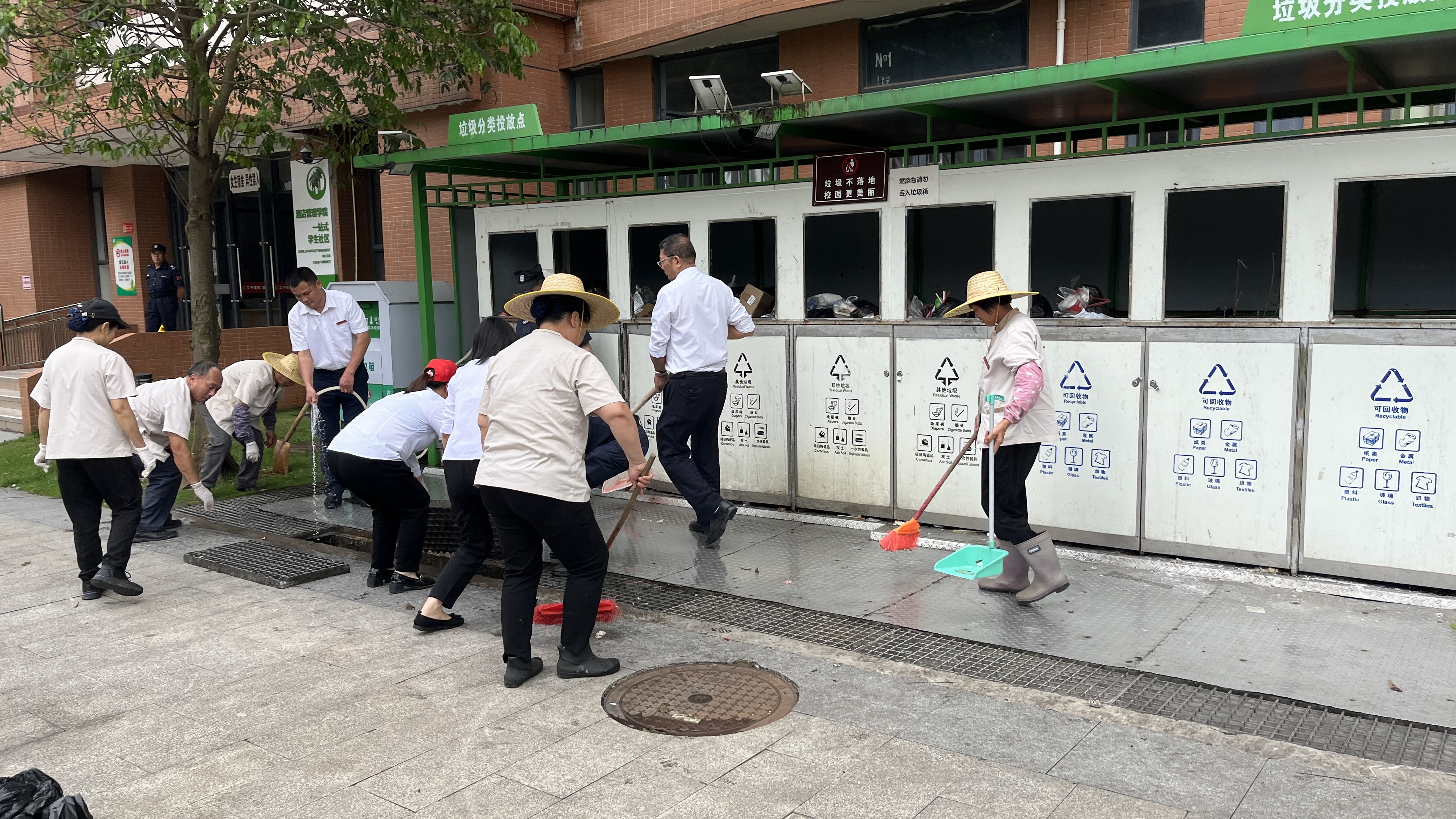 广州校区环境卫生清扫现场