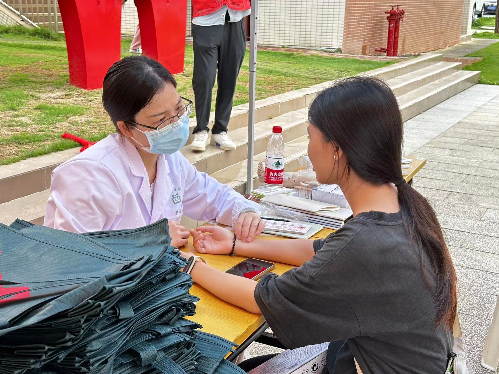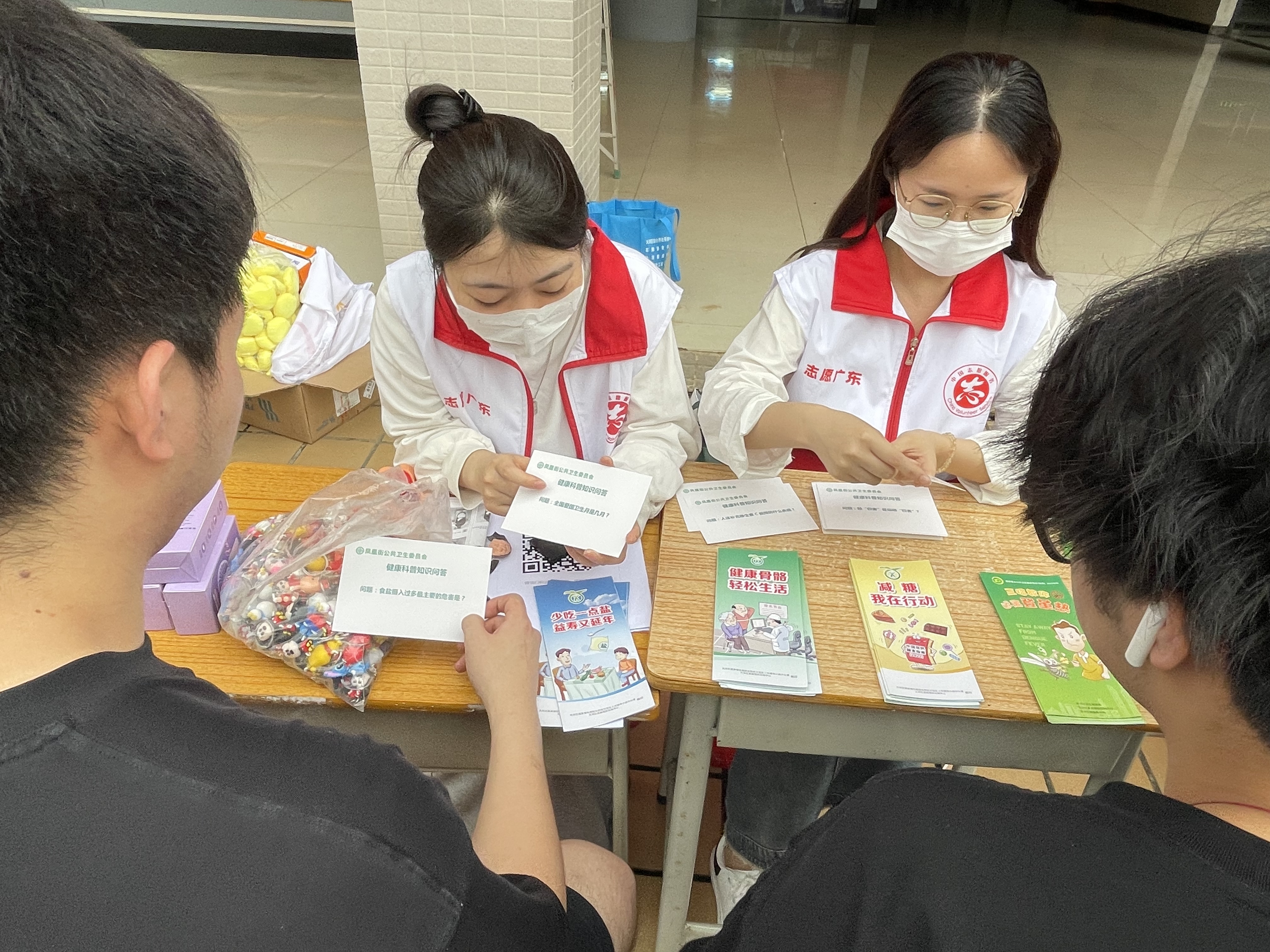 下午,在广州校区创业广场和省职教城(清远)校区学生活动中心广场开展校园健康宣传活动,现场学生对九价疫苗接种、健康科普健康问答、中医康复、女性预防保健等方面做了健康咨询。健康义诊中医护人员为同学们测血压、测体重、测腰围,提醒学生健康饮食、劳逸结合、多运动,建议肥胖学生“管住嘴,迈开腿”采取科学减肥。现场还派发健康小册子、宣传单和小礼品,让学生获得健康知识,现场吸引超过600名同学参与其中,达到有效地宣传效果。
