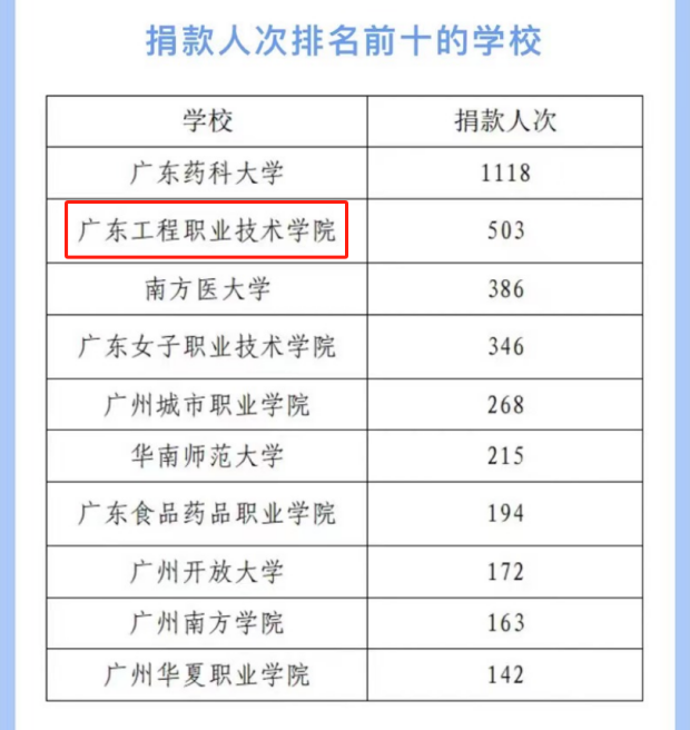 5月1日-5月9日,在广州市红十字会的指导下,我校参与“5.8人道公益日”为“广东救在身边”项目开展筹款活动,通过线上线下形式宣传活动,师生及爱心人士积极参与,503名师生参与捐款活动,共筹款1393元,在广州地区学校捐款中捐款人次排名第二,金额排名前十。