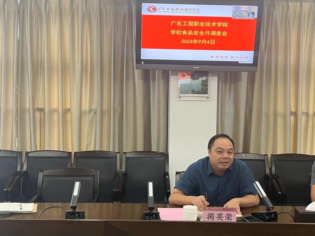 为进一步加强学校食品安全管理,切实保障师生饮食安全,2024年9月4日上午,学校在广州校区办公楼615和省职教城(清远)校区办公楼411召开食品安全月调度会议。会议由党委委员、副校长揭英荣主持,学校食品安全总监、学校食品安全管理员、两校区各食堂承包公司现场负责人、现场经理及超市经理等参加会议。