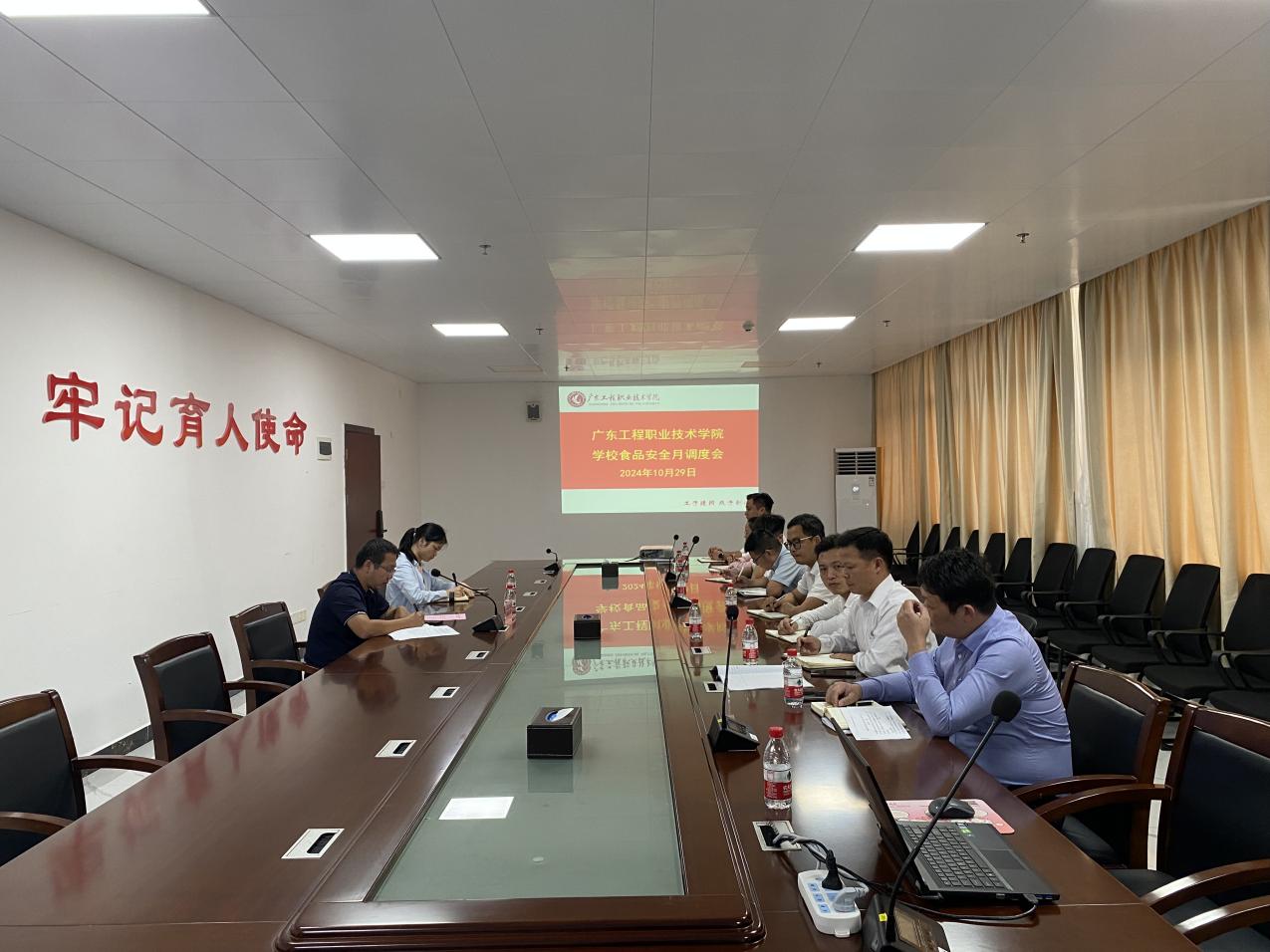 为持续提升学校食品安全管理水平,切实守护师生饮食安全,落实“日管控、周排查、月调度”工作制度,10月29日下午,学校在广州校区办公楼615和省职教城(清远)校区办公楼411连线召开食品安全月调度会议。党委委员、副校长揭英荣出席会议,学校食品安全总监、学校食品安全管理员、两校区各食堂承包公司现场负责人、现场经理参加。会议由总务后勤部(保卫部)负责人廖彦云主持。