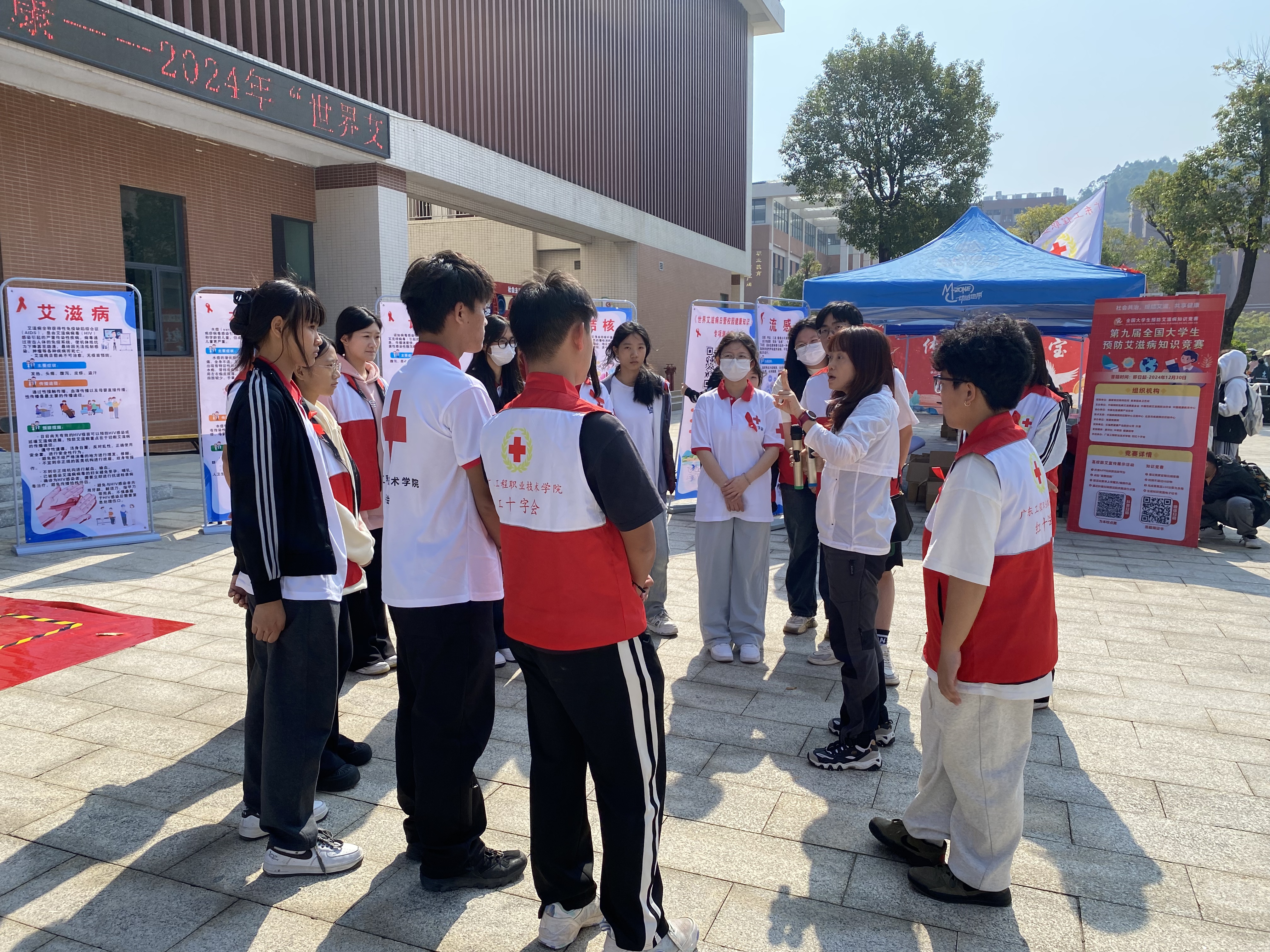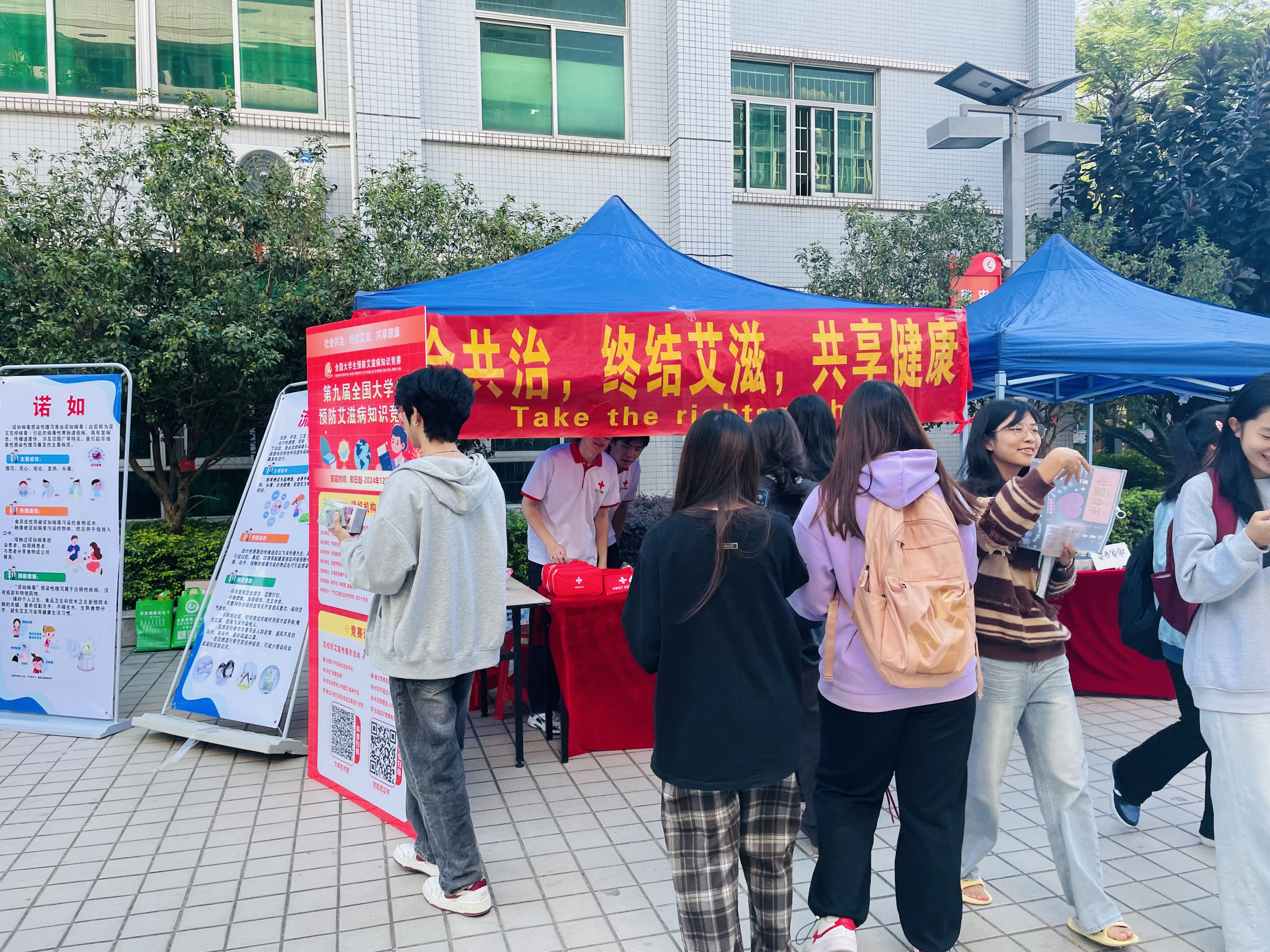 为强化校园艾滋病性病防治知识普及,提升学生自我防护与健康意识,全力遏制艾滋病的传播扩散,一场以“社会共治,终结艾滋,共享健康”为主题的世界艾滋病日系列活动,近日分别广州校区创业广场及省职教城(清远)校区学生活动中心广场盛大举行。活动不仅涵盖了艾滋病相关知识,还广泛涉及水痘、肺结核、登革热、流感等各类传染病知识,以及食品安全、减盐减糖减油增豆等健康饮食理念的宣传展览,旨在全方位提升学生的健康素养。