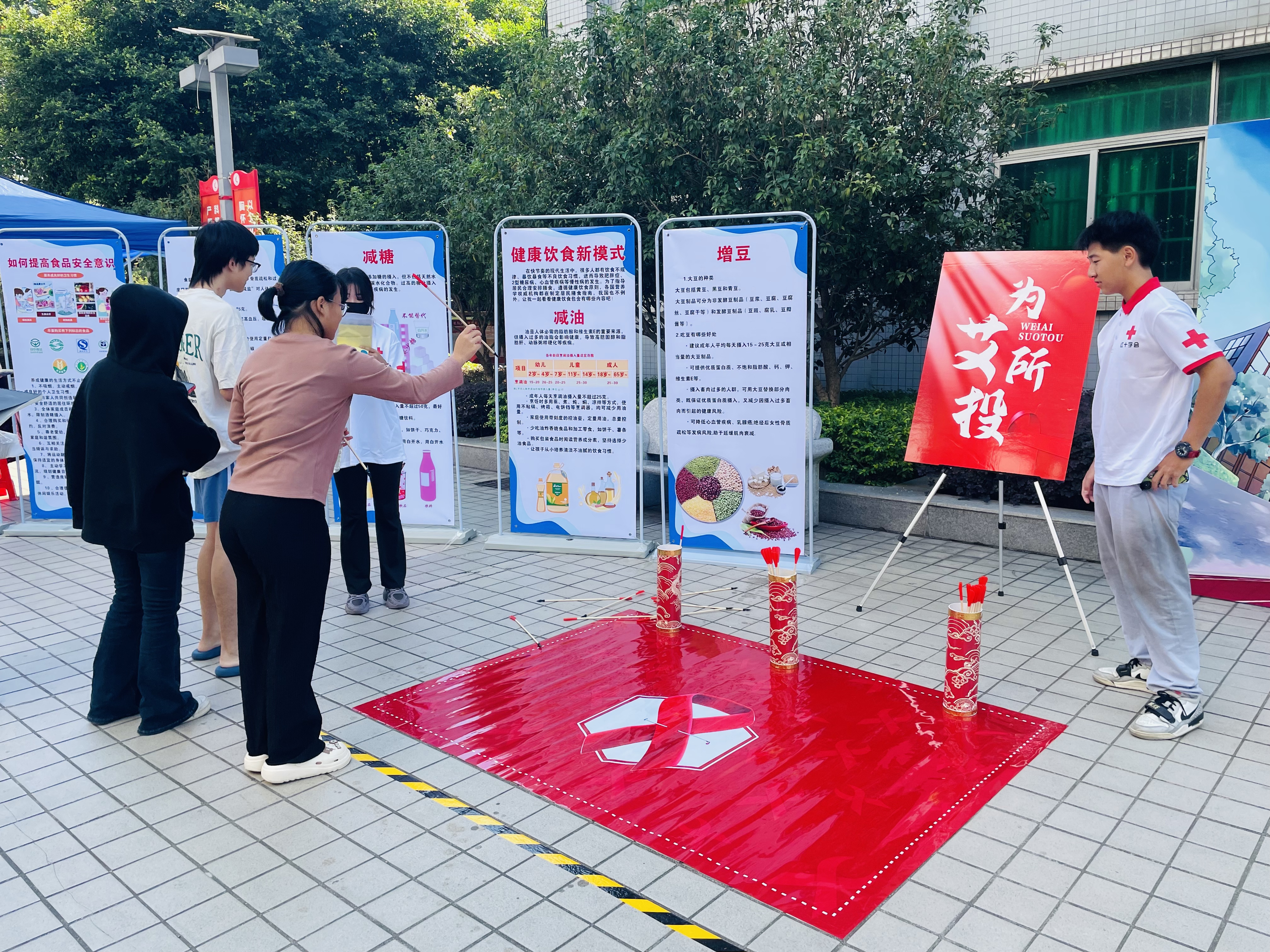 活动前,负责人精心组织红十字志愿者,明确岗位分工,悉心指导布场工作,为活动的顺利推进筑牢根基。