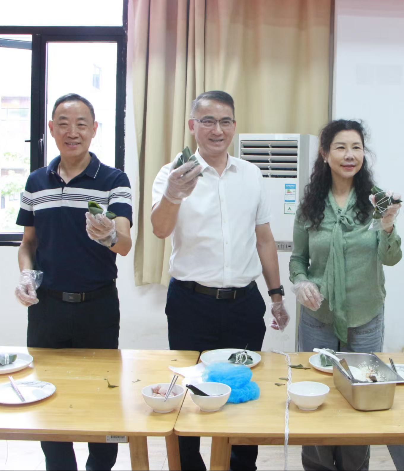 校领导展示亲手包制粽子