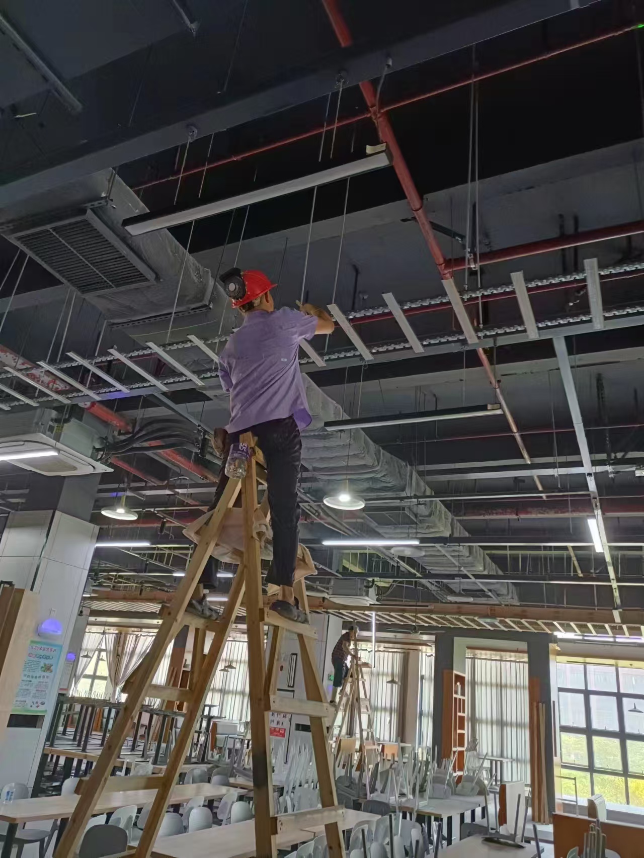 清远校区学生宿舍1-7栋宿舍利用假期进行全面防水补漏和施工,包括对宿舍风扇和空调清洁,为学生创造更加舒适、安全的生活环境。