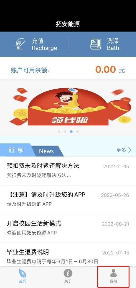 4.如遇热水设备故障,请在“拓安能源APP”首页点击