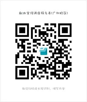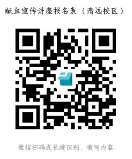 ( 一)献血宣传讲座,各二级学院组织学生参加宣讲活 动,参加宣讲活动的学生可获得素质拓展分 2 分。省职教城 (清远)校区每个学院安排 50 名学生参加,广州校区每个 学院安排 60 名学生参加。 学生识别校区献血宣传讲座报名 表二维码(附件 1)进行报名,参加宣讲活动的学生须提前10 分钟到场签到。