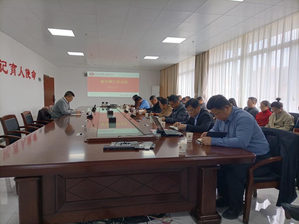 叶忠明书记作了题为《勇担使命 以奋斗姿态持续谱写高质量发展新篇章》的讲话。总结了学校寒假期间各项工作开展情况,充分肯定了假期仍坚守岗位的双高”建设团队、职业技能竞赛备赛团队等各条战线教职工的辛勤付出。他指出,2026年是“十五五”规划的开局之年,也是学校夯基垒台、积蓄力量、奋力突破的关键之年。各单位要紧紧围绕高质量发展主线,聚焦“六大攻坚行动”总体部署,精准发力、务求实效,本学期重点推进四方面工作任务: 一是全力冲刺“双高”建设验收,确保高质量通过,持续夯实内涵式发展根基;二是全面做好办学能力评价工作,进一步提升办学关键能力;三是深化高水平专业群建设,推动专业结构与区域产业需求深度适配;四是纵深推进体制机制改革,加快释放办学活力与内生动力。