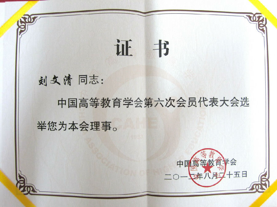 刘文清书记当选中国高等教育学会理事