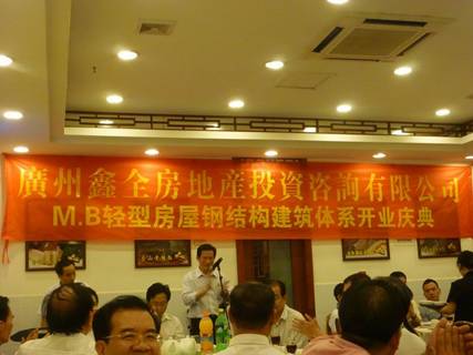 下午,继续教育学院赵敏青院长、陈景春副院长、柯晓略老师参加了广州鑫全房地产投资咨询有限公司"M.B轻钢轻板房屋建筑体系"推广开业庆典,赵院长在开业庆典上发表致辞。此次庆典标志着我院与广州鑫全房地产投资咨询有限公司合作推广"M.B轻钢轻板房屋建筑体系"培训的正式启动。