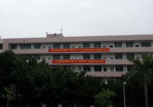 大红的横幅挂起来,金色的党徽贴起来,广东工程职业学院的校园到处洋溢着喜迎十八大的欢乐祥和气氛。在值班室,在体育场,在林荫道,老师和学生们以各种形式在收听收看党的十八大开幕式盛况。