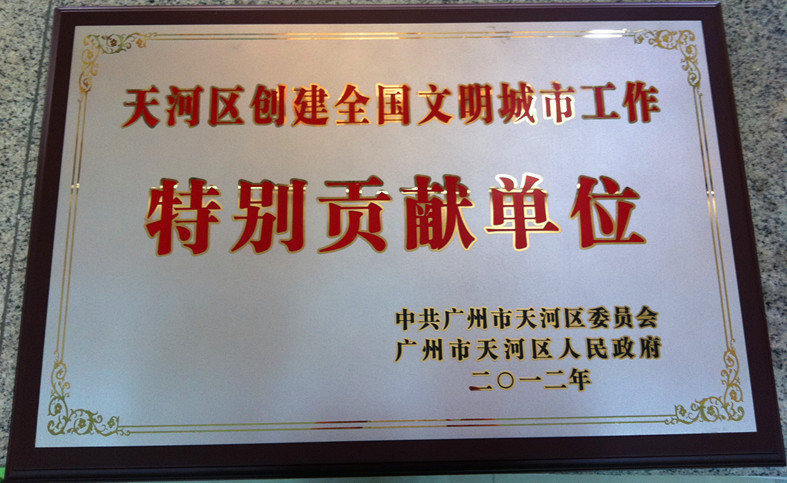 喜讯——学院获得天河区创建全国文明城市工作特别贡献奖