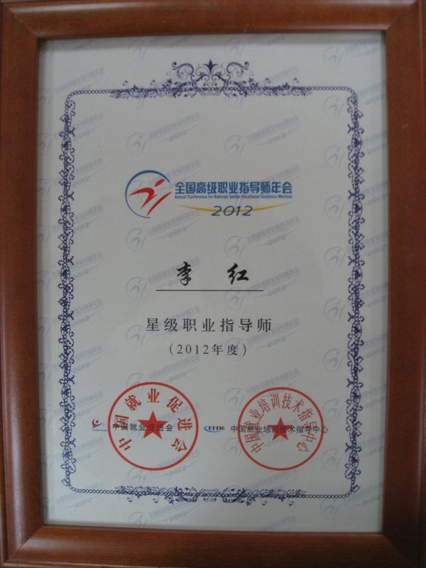 热烈祝贺我院李红主任荣获全国首届星级职业指导师殊荣