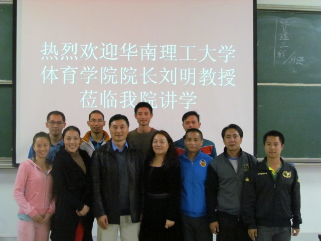 12月10日,华南理工大学体育学院院长、硕士生导师刘明教授应邀来我校作了题为"中国体育与未来中国体育发展方式"的专题讲座。