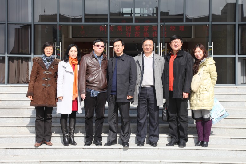 (左起:外语系甘利主任、教务处张爱国处长、学院劳汉生院长、高教处郑文处长、高教社周龙主任、高教处刘文平副处长、高教社黄见经理)