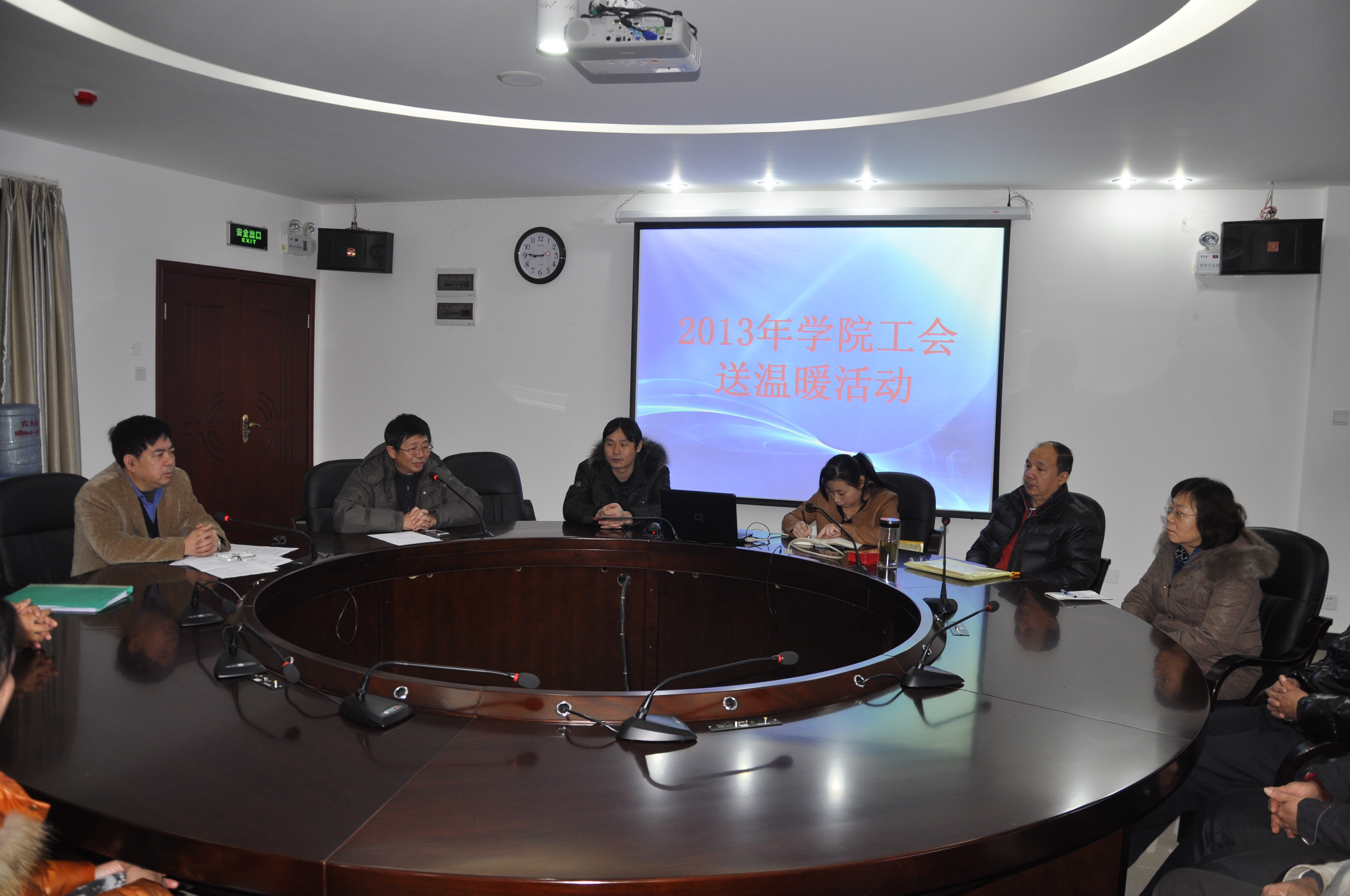 2013年1月10日上午,寒风呼啸,但在行政楼506会议室里却温暖如春,这里正在召开学院工会送温暖座谈会。学院党委副书记、纪委书记温孝胜、副院级领导、学院工会主席徐启扬出席并做了重要讲话,学院工会委员及困难教职工共27人参加了座谈,会议由徐启扬主席主持。
