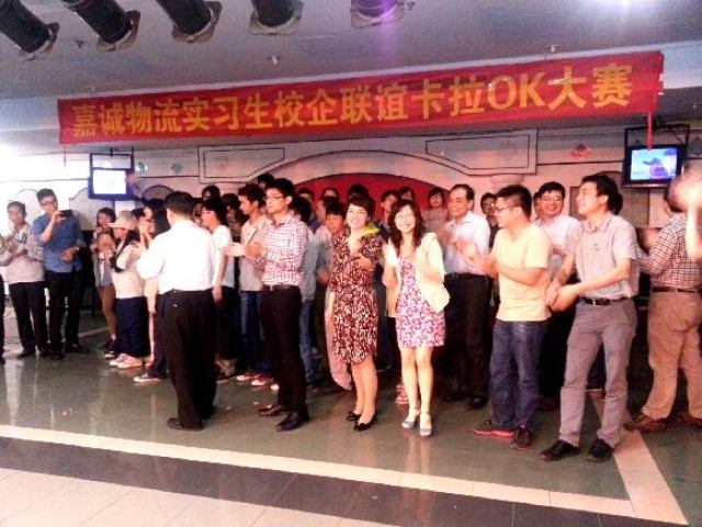 为鼓励实习同学,5月3日晚,在番禺松下电器员工活动厅举行了"嘉城物流实习生校企联谊卡拉OK大赛"。嘉诚物流全体高层领导、我院胡艳曦副院长、梁涛主任及方轮、米欣、万志坚、蔡松林、邱志鹏、黄晓丹、湛任远、梁晶晶、程哲老师等出席晚会。胡院长在大赛前讲话,代表学院刘文清书记、劳汉生院长对同学们表示慰问和勉励,希望同学们坚持到底,学成而归。