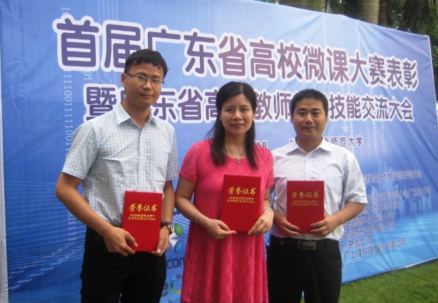 广东省首届高校微课大赛于2013年8月落下帷幕。我校选手在高职高专组激烈竞争中,脱颖而出,共有三位老师荣获一、二等奖。其中,思想政治教学理论部曾名沁老师获一等奖,电梯学院肖青老师、思想政治教学理论部张建德老师分别获得二等奖。由于我校在大赛组织活动中表现出色,成绩突出,被大赛组委会授予"优秀组织奖"(共10个单位,7所本科院校,3所高职院校)。