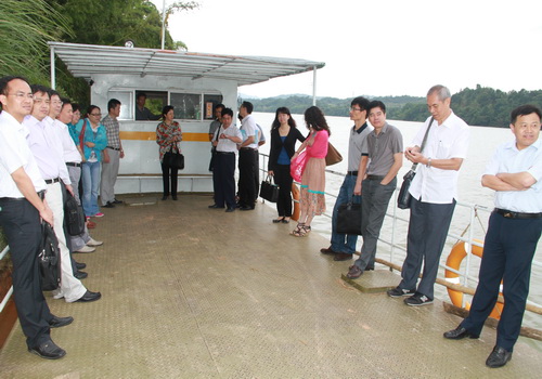 由于交通条件不便,我院扶贫责任人需乘坐渡般前往鹤塘村