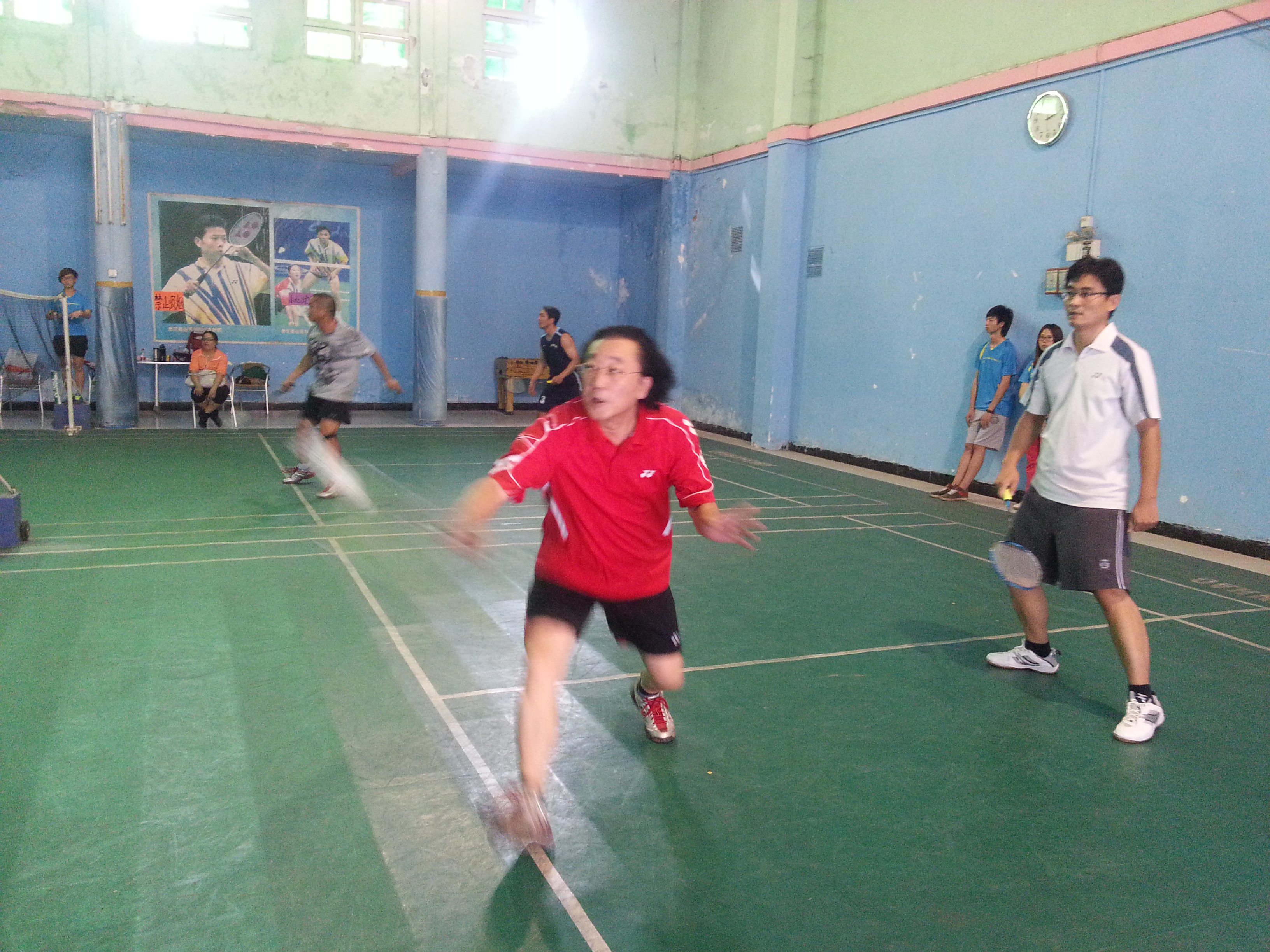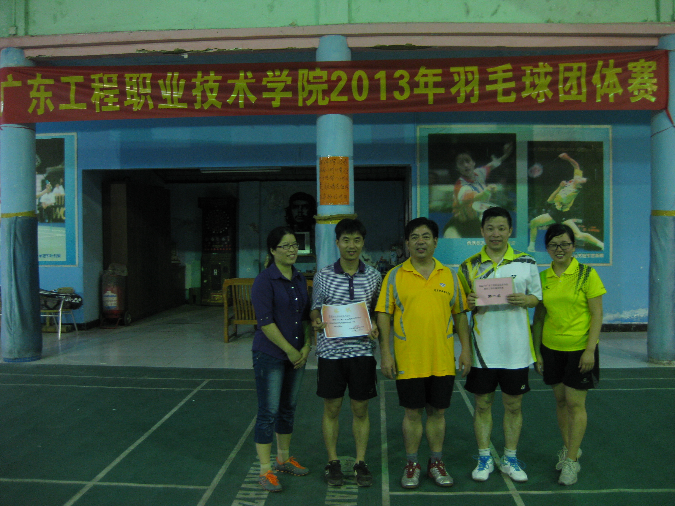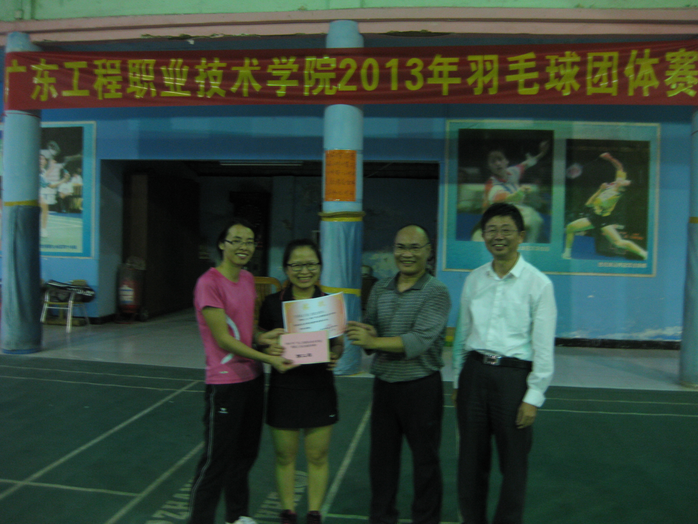 11月7日下午,由学院工会主办、体育部承办的2013年广东工程职业技术学院教职工羽毛球团体赛在凤凰羽毛球馆举行。本次比赛有9个参赛队,共18个工会小组参赛。比赛以男双、女双和混双的成绩记团体总分,采取每局21分、每盘三局两胜制。比赛首先进行小组循环赛,各小组前两名进入淘汰赛,再由获胜的3个队进行循环赛确定前三名,负的三个队进行循环赛确定4到6名的名次。